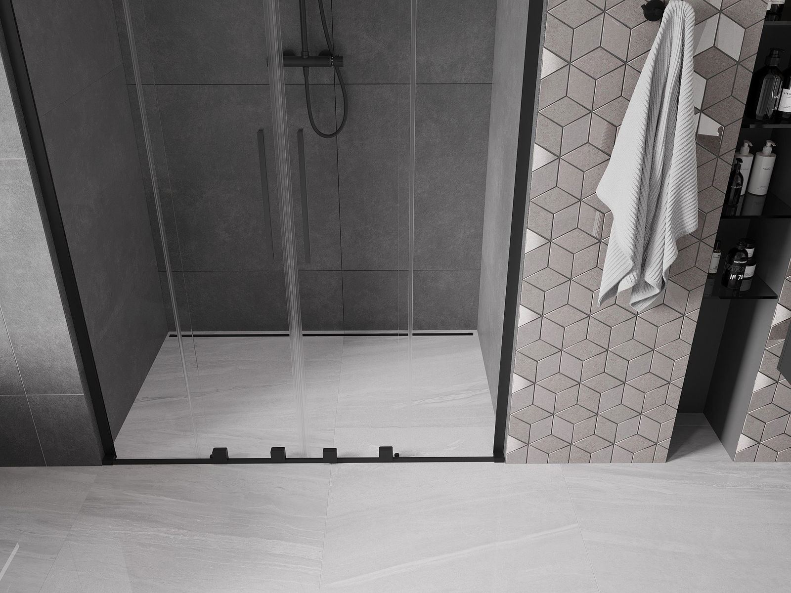 Mexen Velar L Duo drzwi prysznicowe rozsuwane 160 cm, transparent, czarne - 871-160-003-02-70