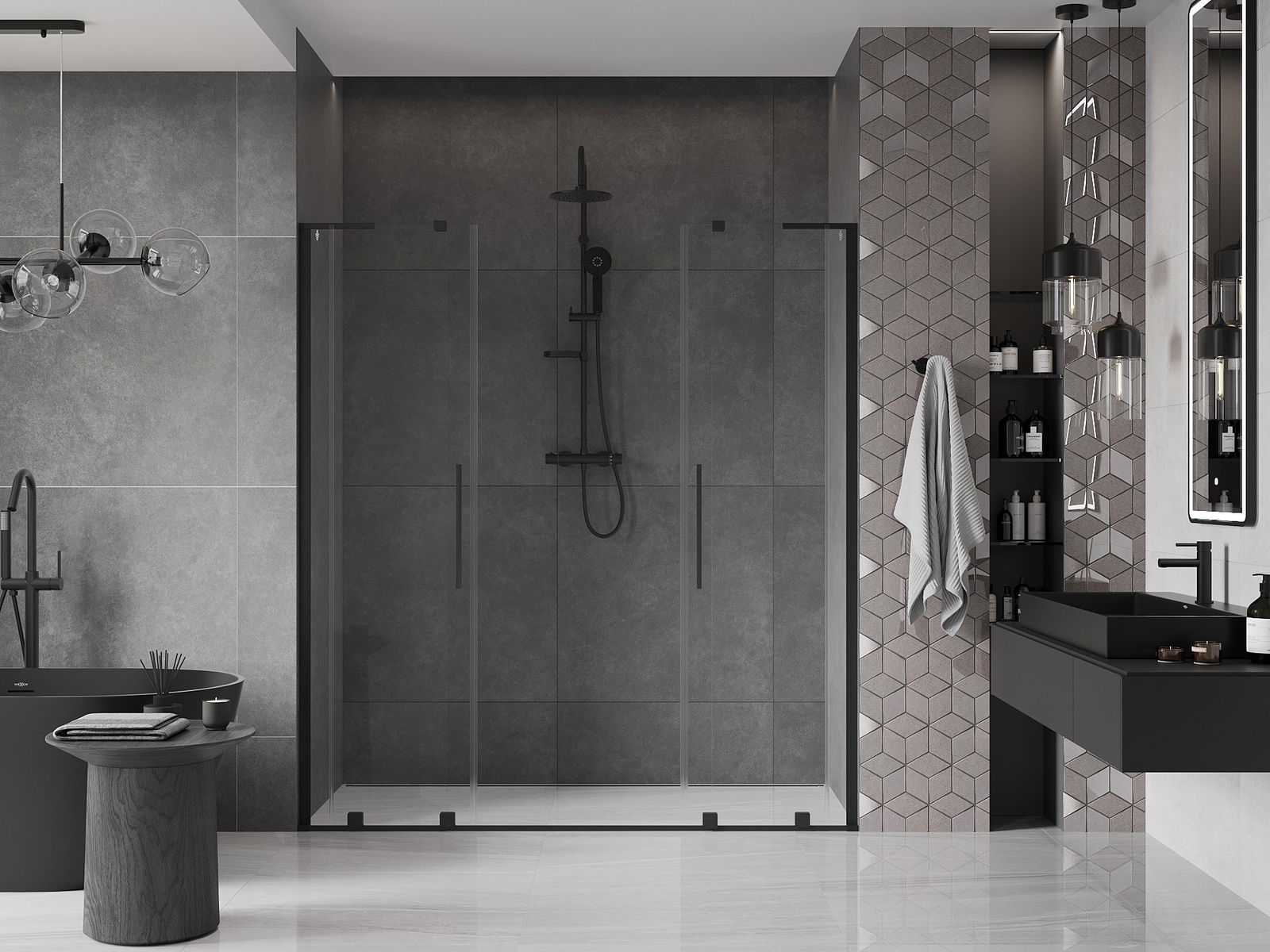 Mexen Velar L Duo drzwi prysznicowe rozsuwane 180 cm, transparent, czarne - 871-180-003-02-70