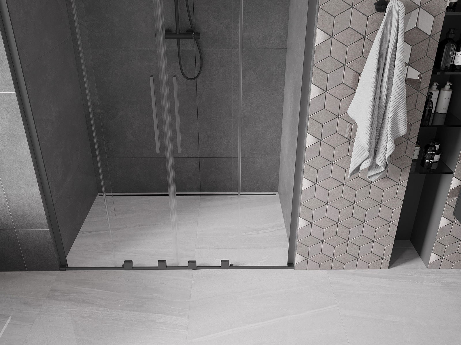 Mexen Velar L Duo drzwi prysznicowe rozsuwane 150 cm, transparent, gun metal - 871-150-003-02-95