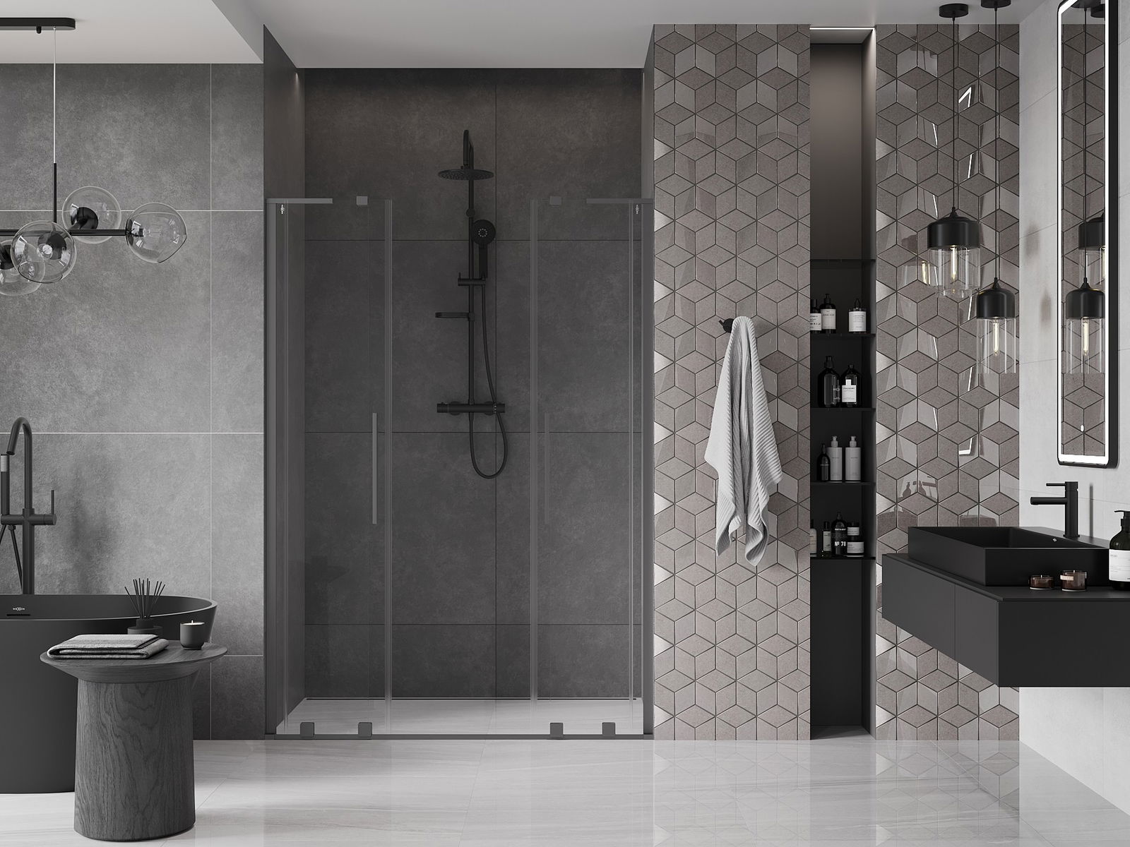 Poręczny i wygodny uchwyt został wykonany ze stali nierdzewnej. Modny kształt w połączeniu z wykończeniem dopasowanym do koloru profili nadaje całości nowoczesnego i stylowego wyglądu, podkreślając estetykę każdej łazienki.