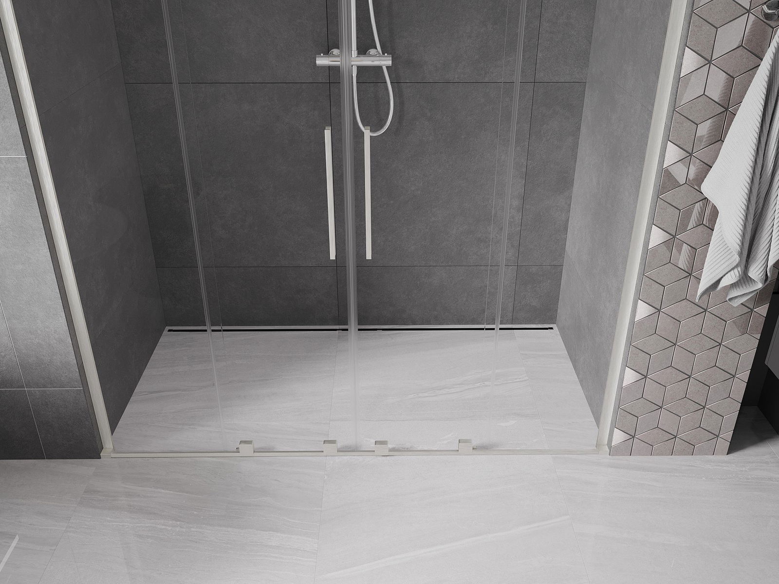 Poręczny i wygodny uchwyt został wykonany ze stali nierdzewnej. Modny kształt w połączeniu z wykończeniem dopasowanym do koloru profili nadaje całości nowoczesnego i stylowego wyglądu, podkreślając estetykę każdej łazienki.