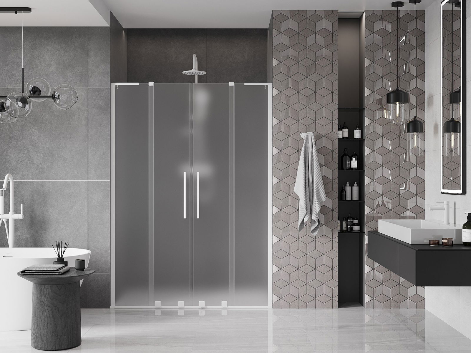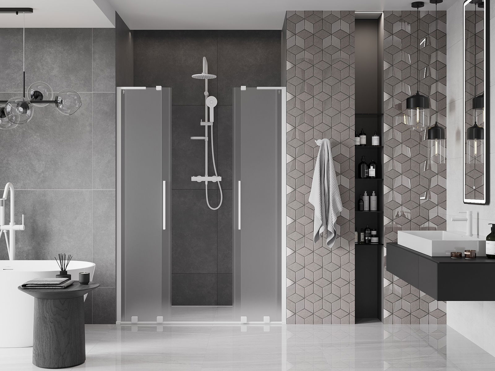 Mexen Velar L Duo drzwi prysznicowe rozsuwane 140 cm, szron, białe - 871-140-003-32-20