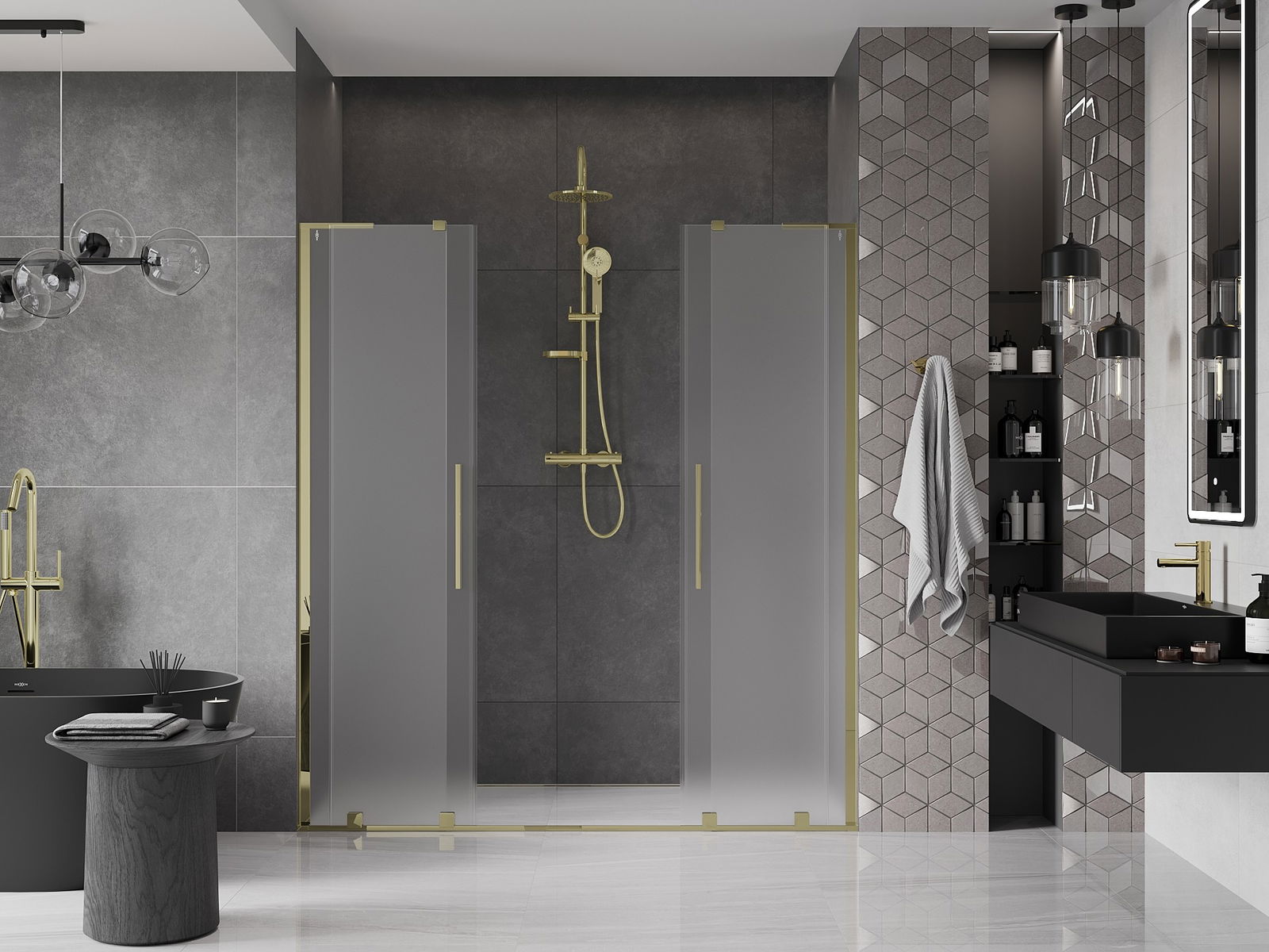 Mexen Velar L Duo drzwi prysznicowe rozsuwane 200 cm, szron, złote - 871-200-003-32-50
