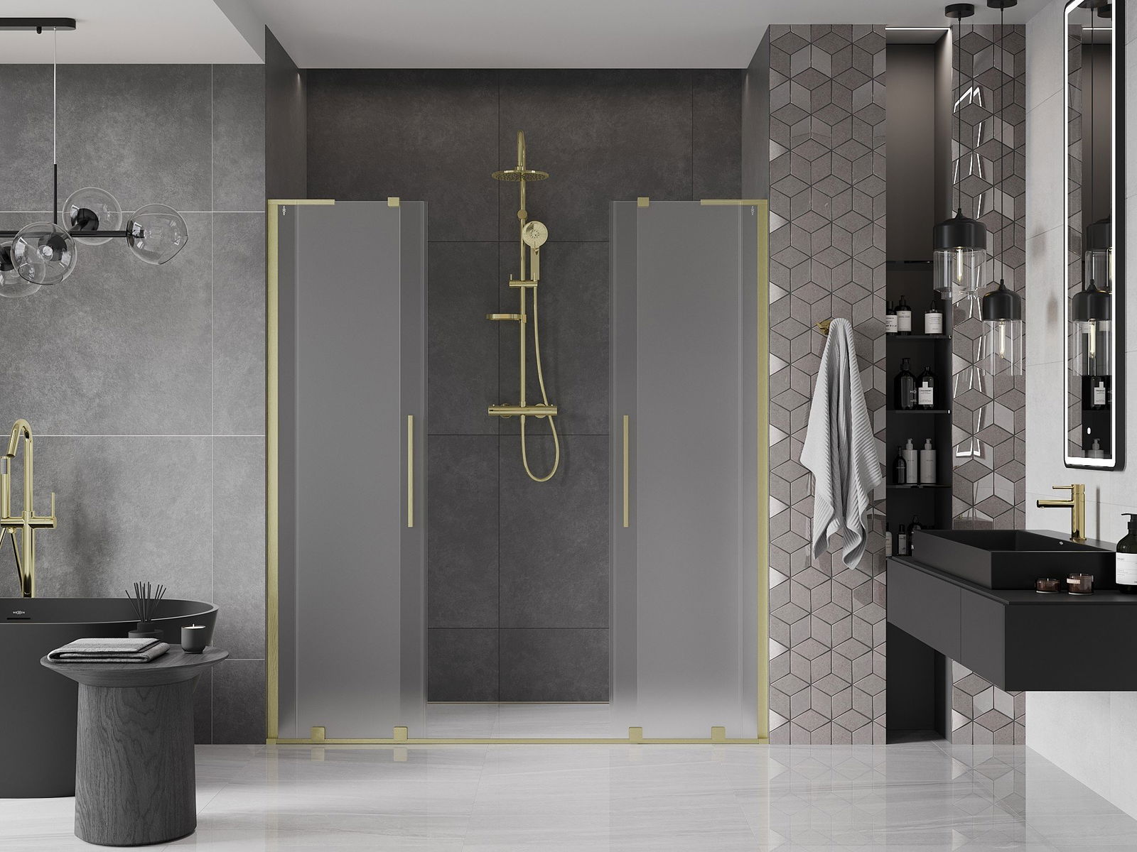 Mexen Velar L Duo drzwi prysznicowe rozsuwane 170 cm, szron, złote szczotkowane - 871-170-003-32-55