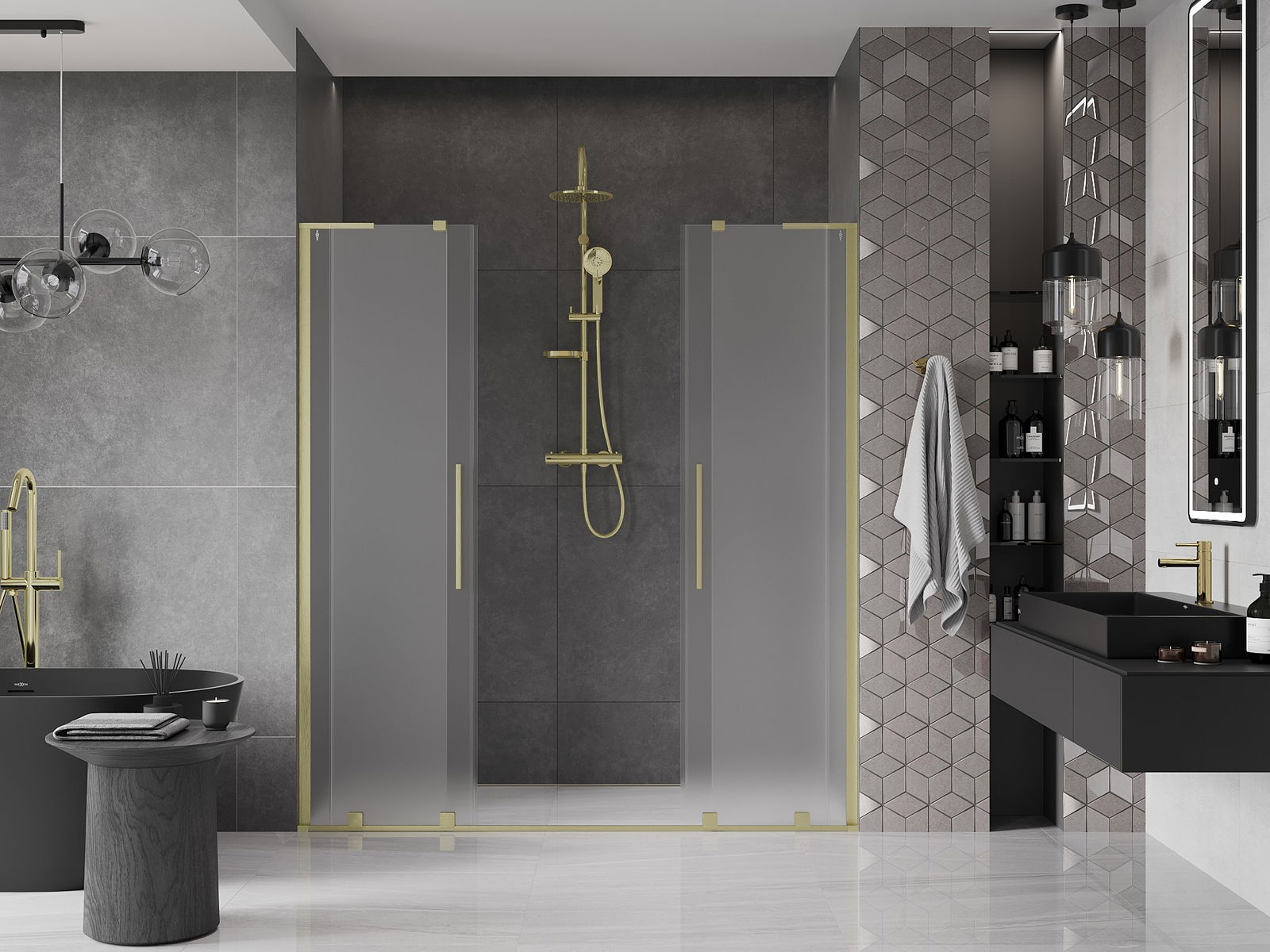 Mexen Velar L Duo drzwi prysznicowe rozsuwane 200 cm, szron, złote szczotkowane - 871-200-003-32-55