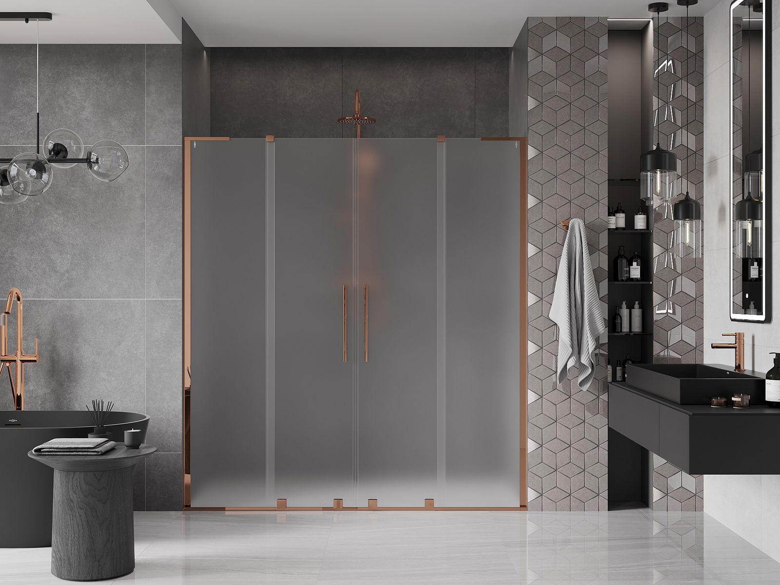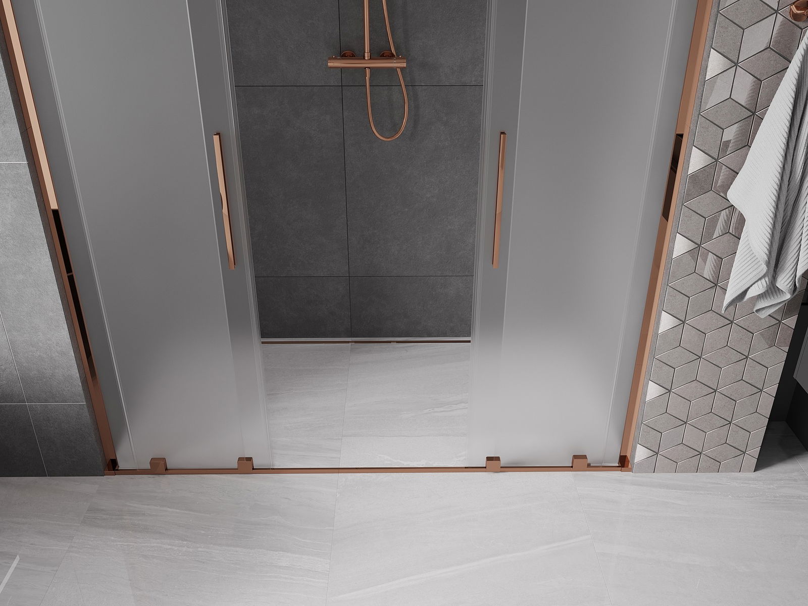 Mexen Velar L Duo drzwi prysznicowe rozsuwane 170 cm, szron, różowe złoto - 871-170-003-32-60