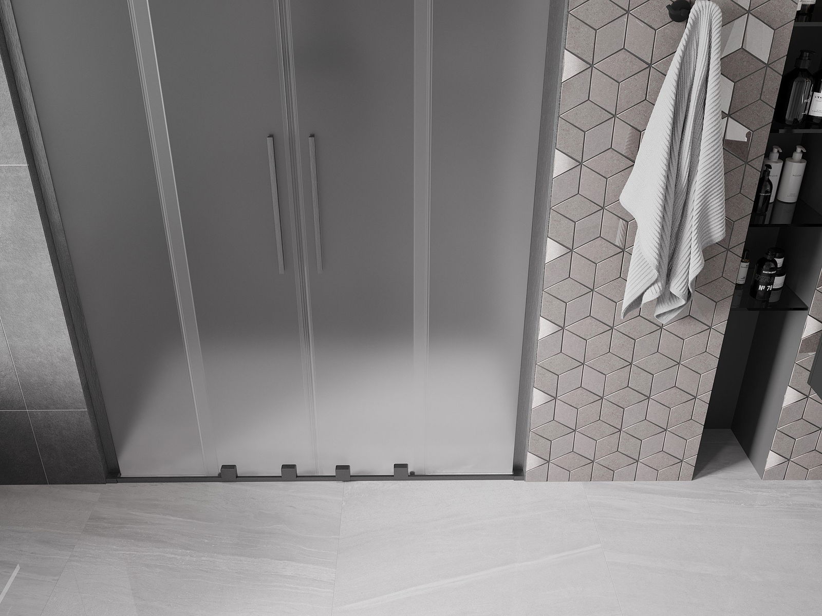 Poręczny i wygodny uchwyt został wykonany ze stali nierdzewnej. Modny kształt w połączeniu z wykończeniem dopasowanym do koloru profili nadaje całości nowoczesnego i stylowego wyglądu, podkreślając estetykę każdej łazienki.