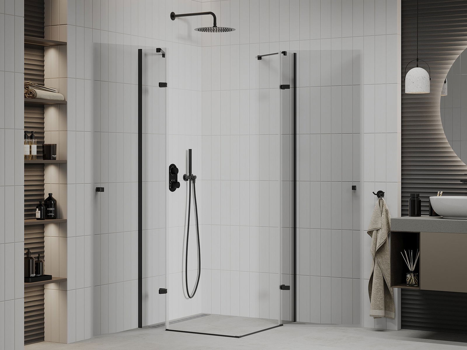 Poręczny i wygodny uchwyt został wykonany z trwałego i odpornego metalu. Modny kształt w połączeniu z wykończeniem dopasowanym do koloru profili nadaje całości nowoczesnego i stylowego wyglądu, podkreślając estetykę każdej łazienki.