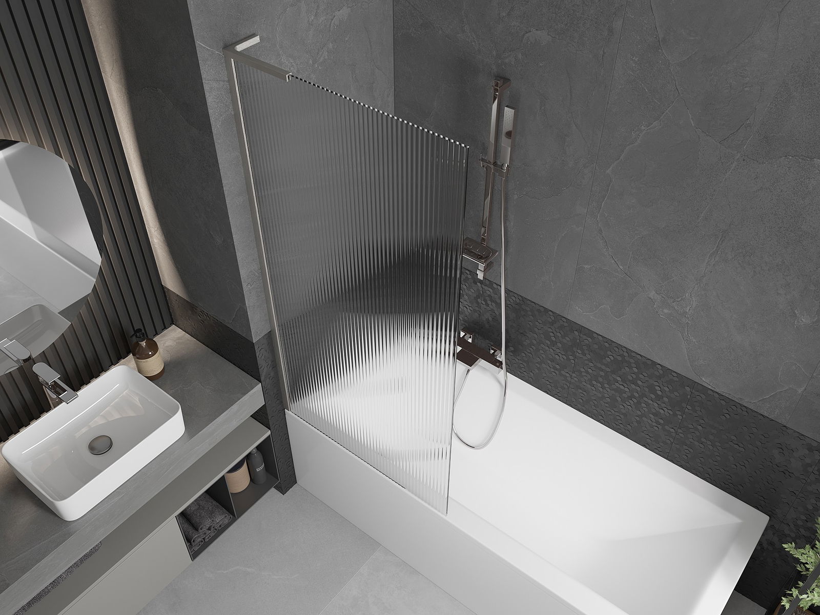 Mexen Next L parawan nawannowy 1-skrzydłowy 80 x 150 cm, prążki, nikiel szczotkowany - 895-080-000-03-09-97