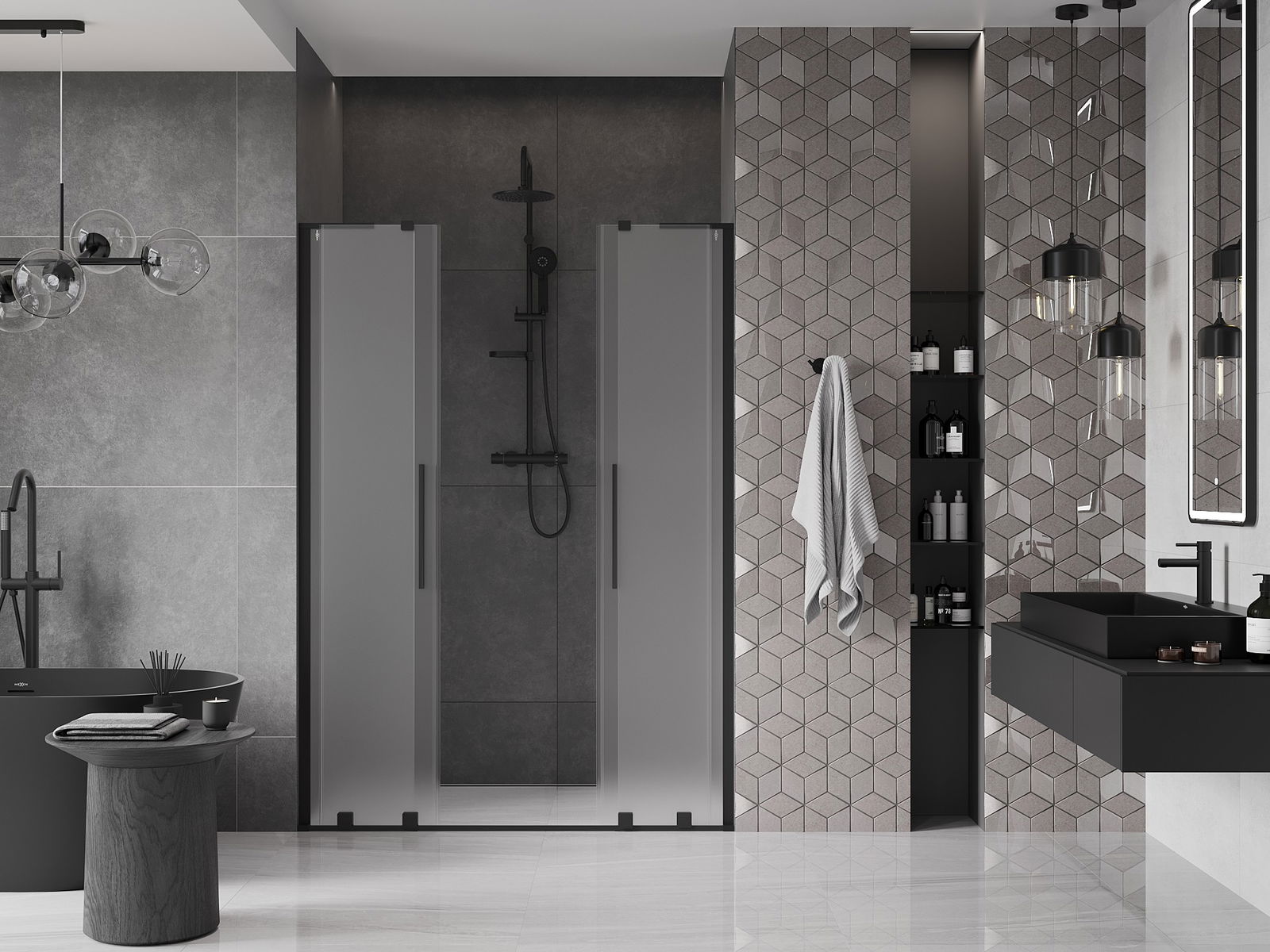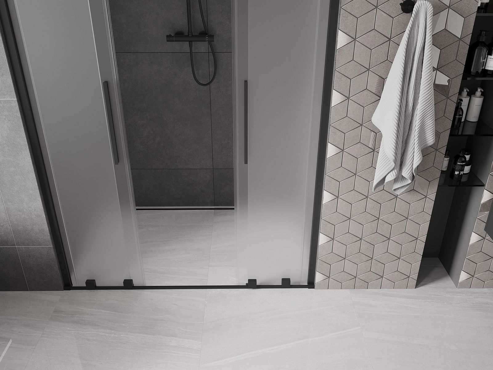 Mexen Velar L Duo drzwi prysznicowe rozsuwane 140 cm, szron, czarne - 871-140-003-32-70
