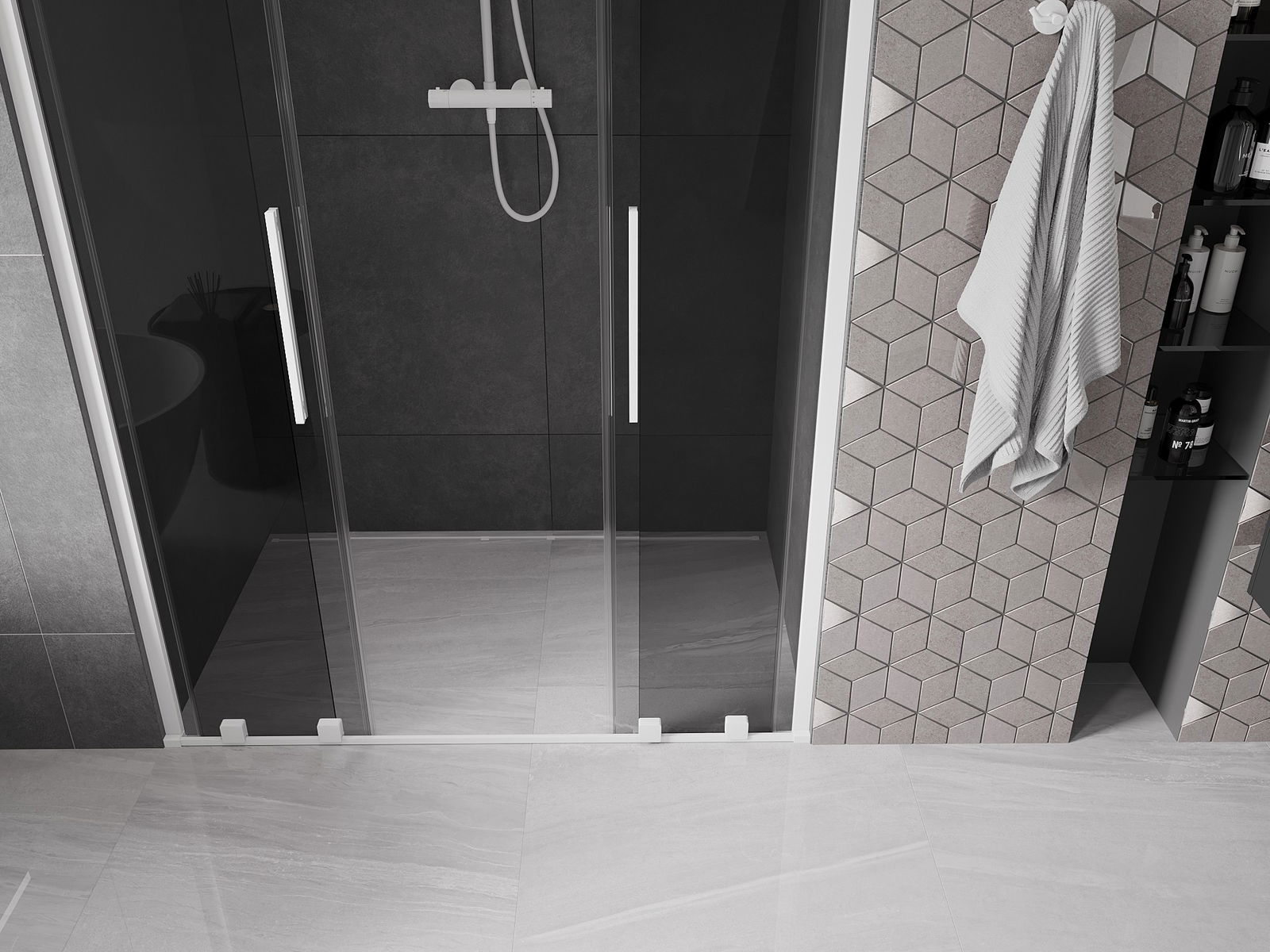 Mexen Velar L Duo drzwi prysznicowe rozsuwane 140 cm, grafit, białe - 871-140-003-42-20