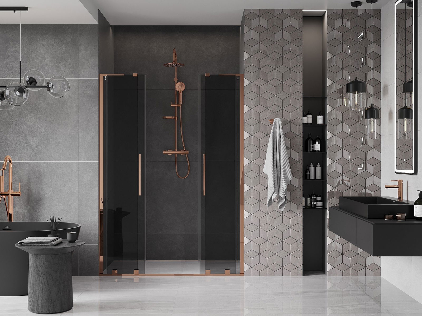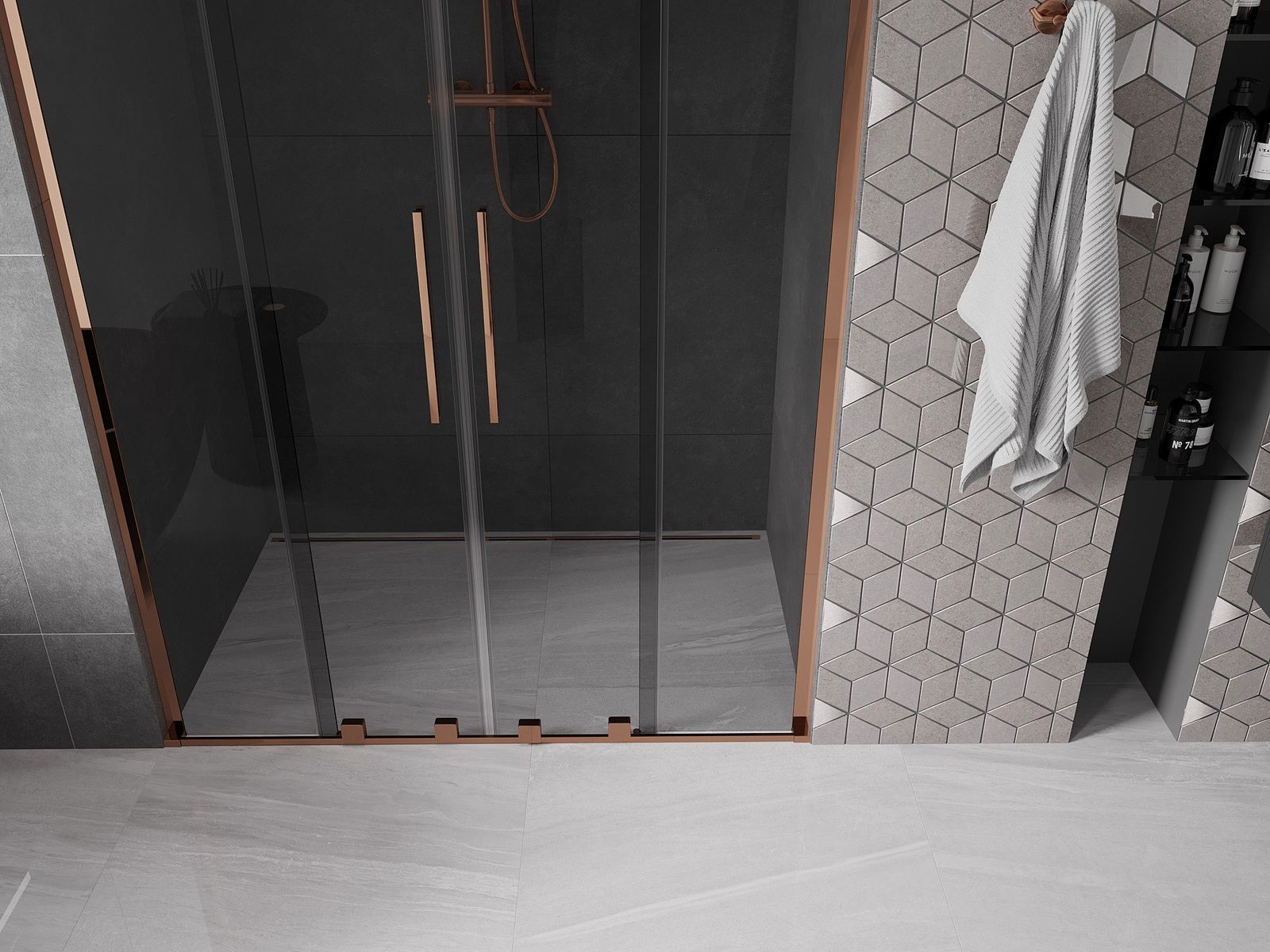 Mexen Velar L Duo drzwi prysznicowe rozsuwane 160 cm, grafit, różowe złoto - 871-160-003-42-60