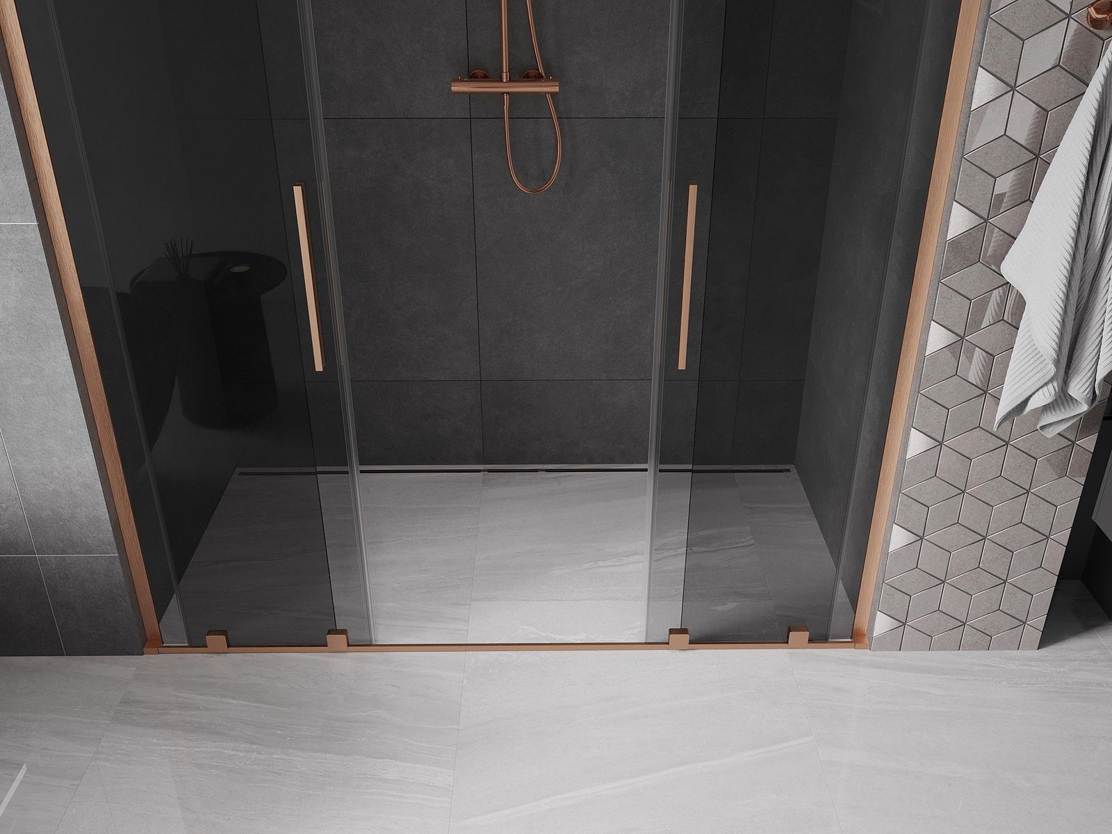 Mexen Velar L Duo drzwi prysznicowe rozsuwane 180 cm, grafit, miedź szczotkowana - 871-180-003-42-65