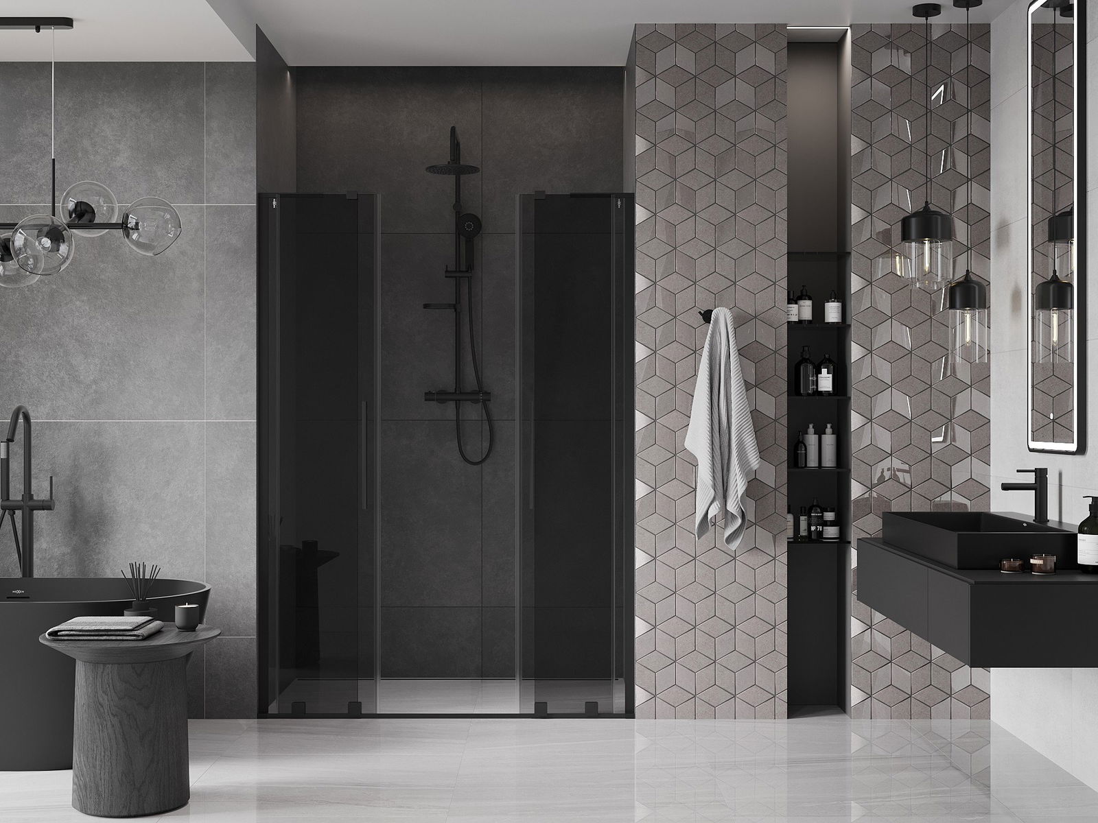 Mexen Velar L Duo drzwi prysznicowe rozsuwane 140 cm, grafit, czarne - 871-140-003-42-70