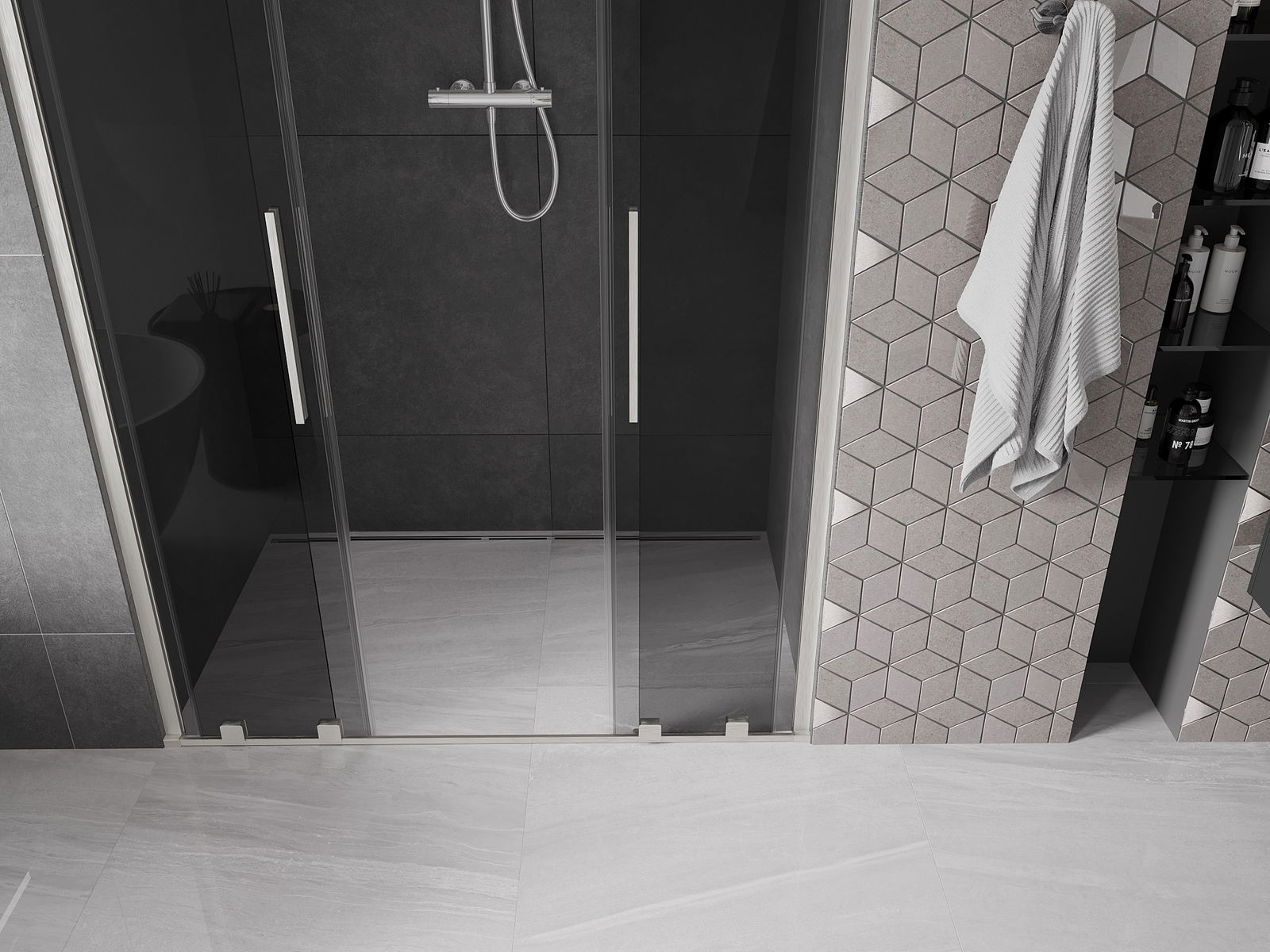 Dzięki zastosowaniu uniwersalnego systemu mocowania, drzwi prysznicowe mogą zostać zamontowane z prawej lub z lewej strony, zależnie od potrzeb. Dzięki temu możesz z łatwością zaprojektować prysznic dopasowany do przestrzeni łazienki.