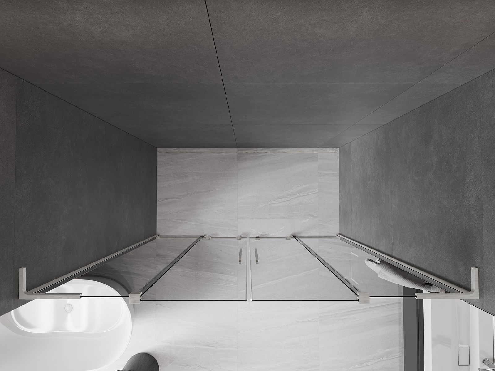 Dzięki zastosowaniu uniwersalnego systemu mocowania, drzwi prysznicowe mogą zostać zamontowane z prawej lub z lewej strony, zależnie od potrzeb. Dzięki temu możesz z łatwością zaprojektować prysznic dopasowany do przestrzeni łazienki.