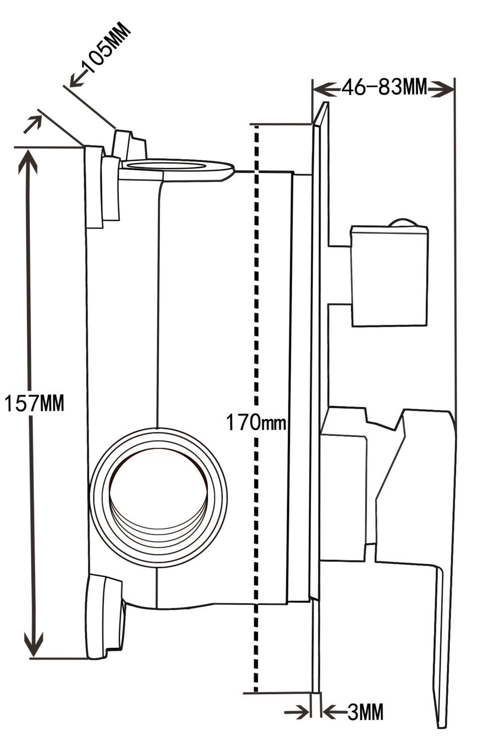 Odległość od ściany: 57 mm