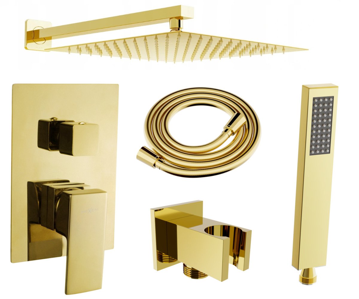 Mexen Uno DR02 zestaw prysznicowy podtynkowy, złoty - 71435DR02-50
