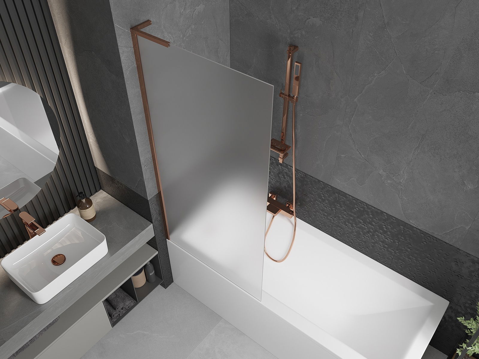 Mexen Next L parawan nawannowy 1-skrzydłowy 80 x 150 cm, szron, różowe złoto - 895-080-000-03-30-60