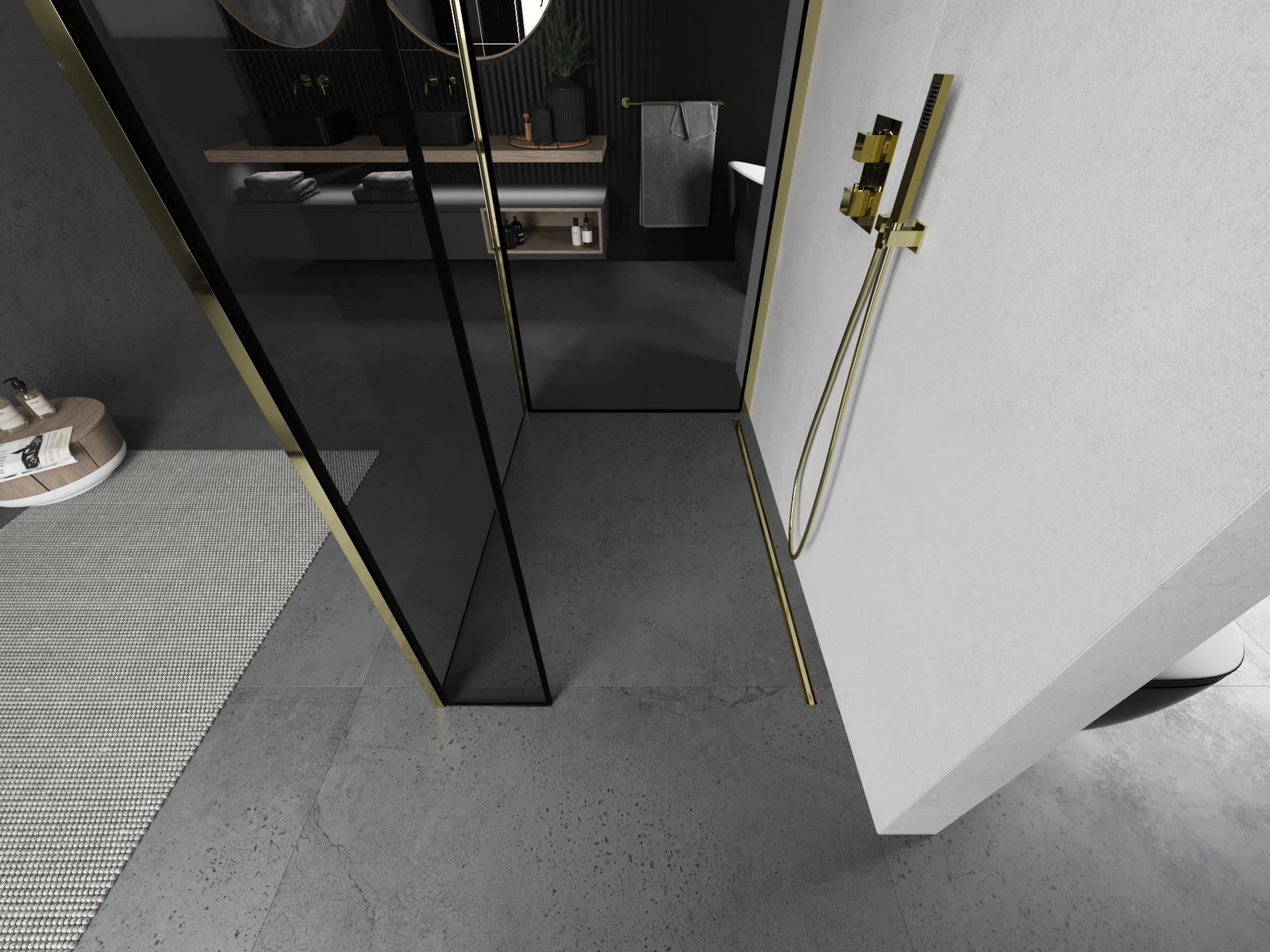 Mexen Kioto ścianka prysznicowa Walk-in 140 x 100 x 40 cm, czarna ramka, złota - 800-140-100-221-50-70-040