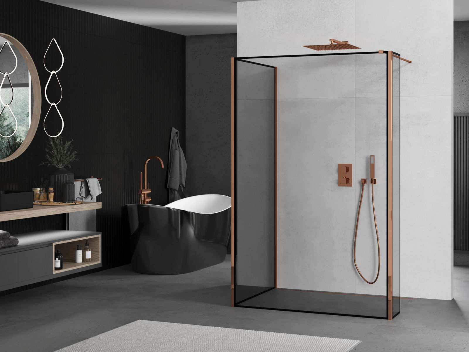 Mexen Kioto ścianka prysznicowa Walk-in 130 x 90 x 40 cm, czarna ramka, różowe złoto - 800-130-090-221-60-70-040