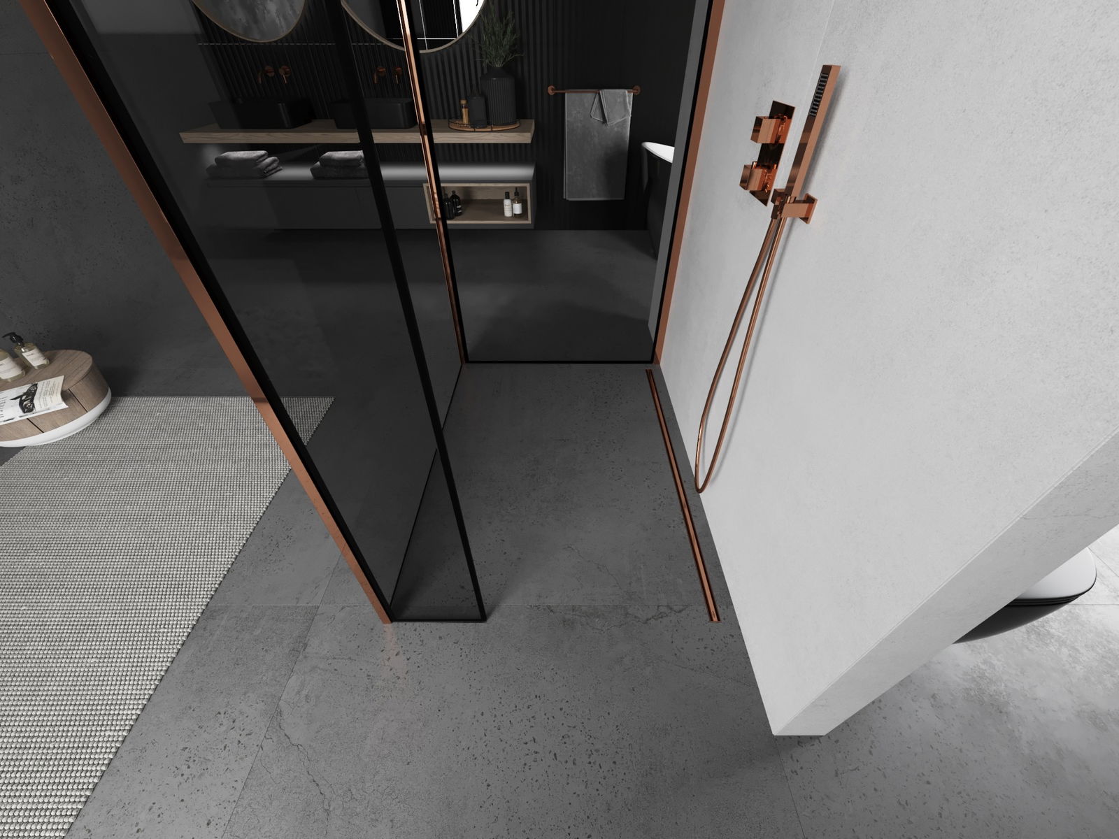 Mexen Kioto ścianka prysznicowa Walk-in 130 x 100 x 40 cm, czarna ramka, różowe złoto - 800-130-100-221-60-70-040
