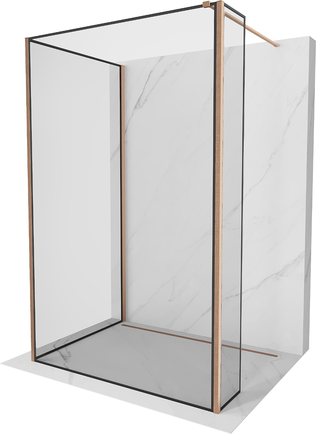 Mexen Kioto ścianka prysznicowa Walk-in 90 x 70 x 40 cm, czarna ramka, miedź szczotkowana - 800-090-070-221-65-70-040
