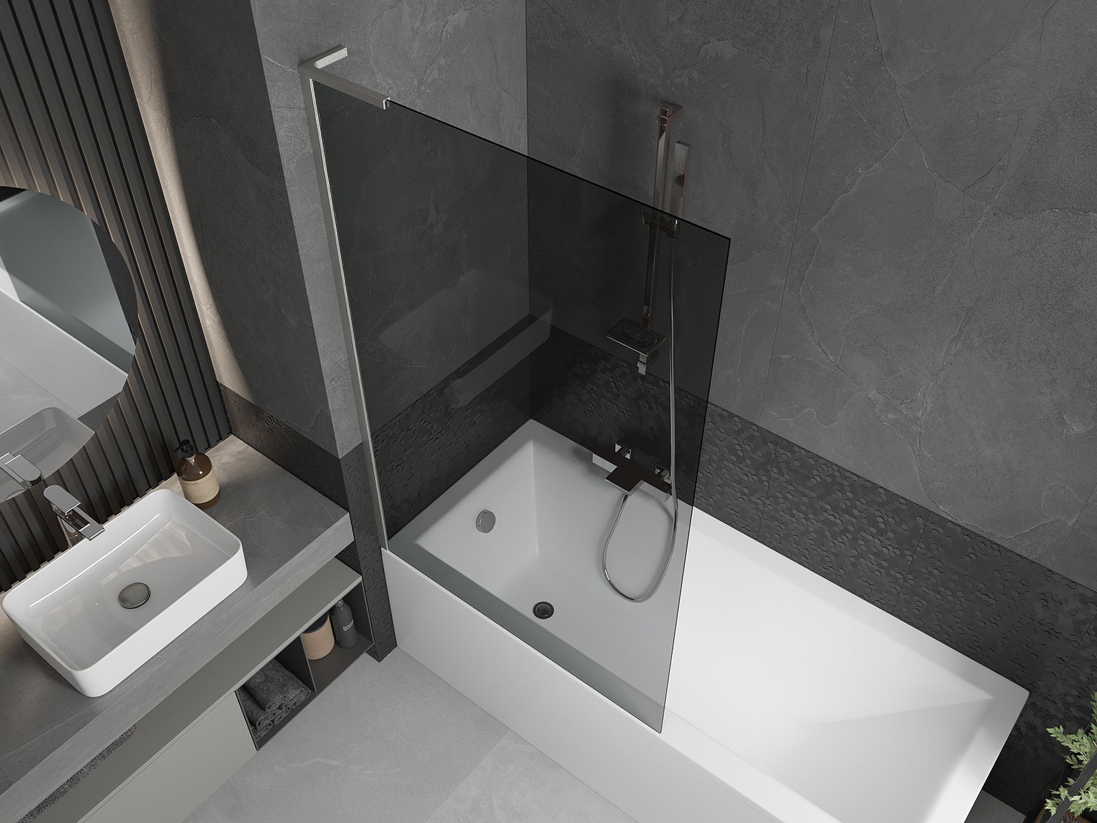 Dzięki zastosowaniu uniwersalnego systemu mocowania, parawan może być zamontowany z prawej lub z lewej strony, zależnie od potrzeb. W ten sposób możesz z łatwością zaprojektować prysznic dopasowany do przestrzeni łazienki.