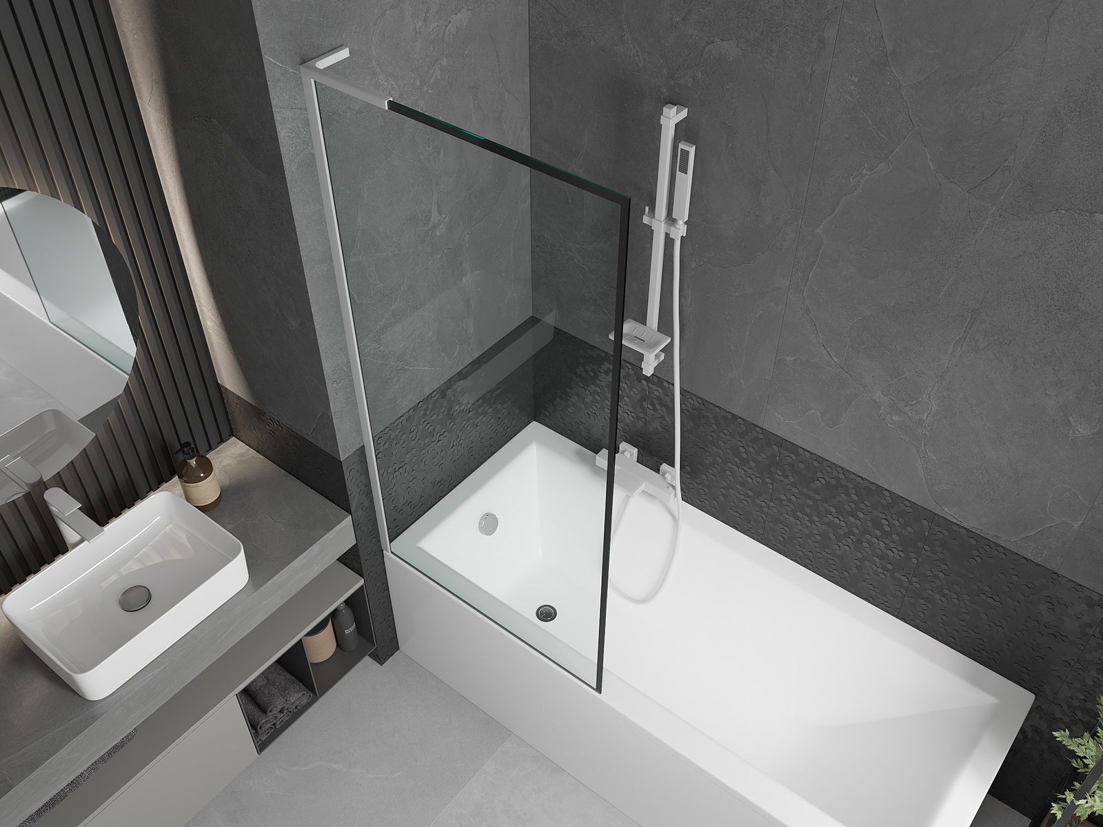 Dzięki zastosowaniu uniwersalnego systemu mocowania, parawan może być zamontowany z prawej lub z lewej strony, zależnie od potrzeb. W ten sposób możesz z łatwością zaprojektować prysznic dopasowany do przestrzeni łazienki.