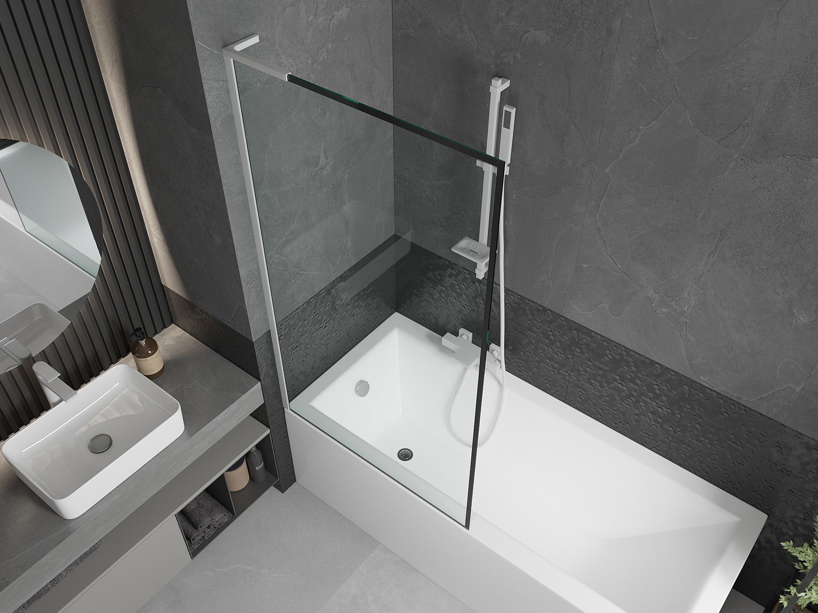 Mexen Next L parawan nawannowy 1-skrzydłowy 90 x 150 cm, czarna ramka, biały - 895-090-000-03-70-20