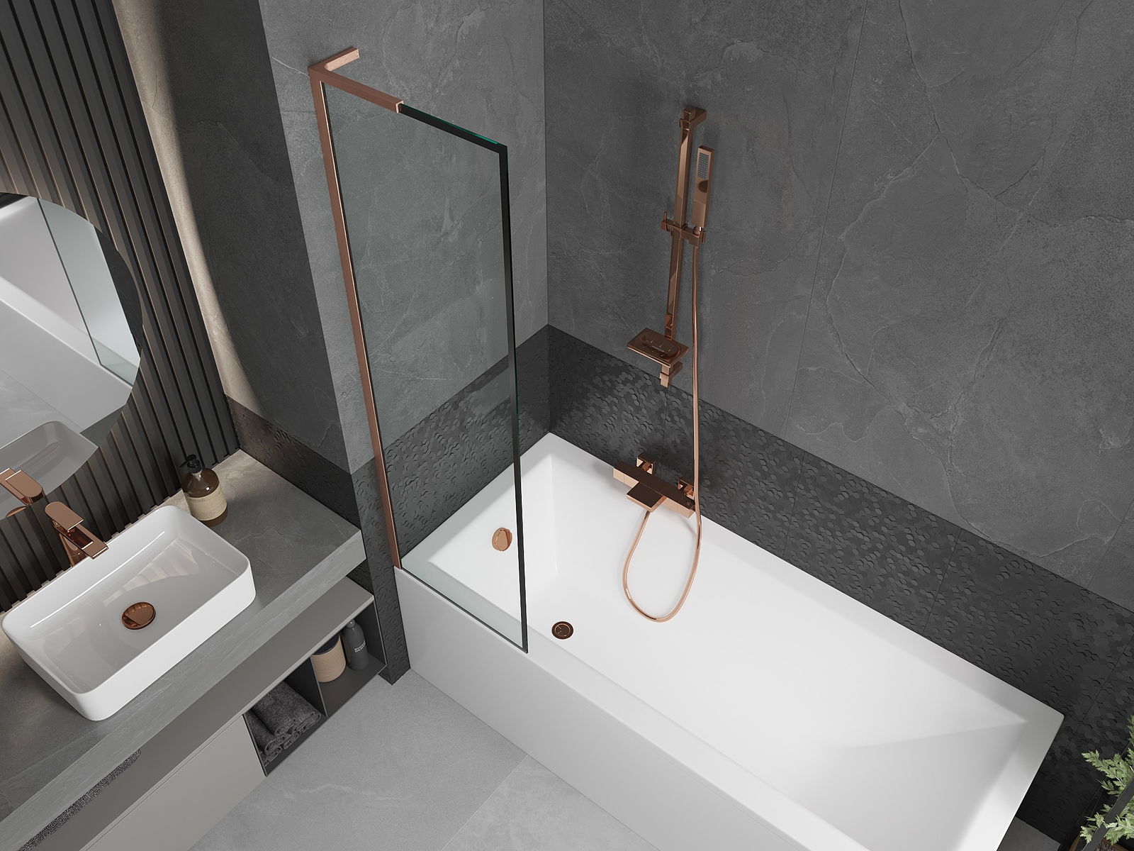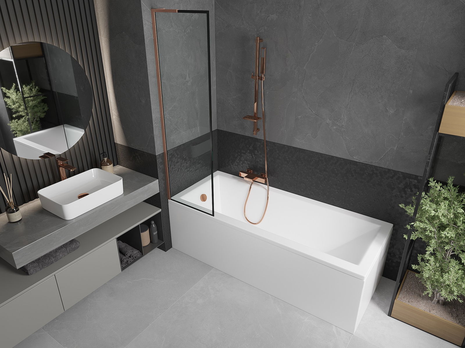 Mexen Next L parawan nawannowy 1-skrzydłowy 50 x 150 cm, czarna ramka, miedź szczotkowana - 895-050-000-03-70-65