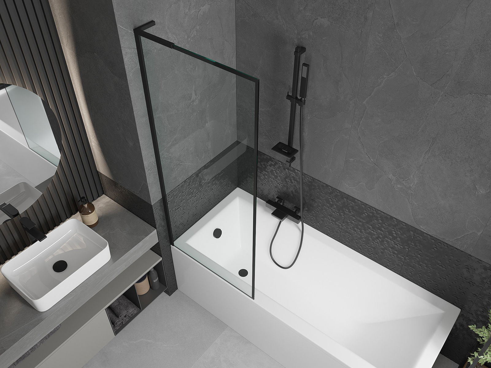 Dzięki zastosowaniu uniwersalnego systemu mocowania, parawan może być zamontowany z prawej lub z lewej strony, zależnie od potrzeb. W ten sposób możesz z łatwością zaprojektować prysznic dopasowany do przestrzeni łazienki.
