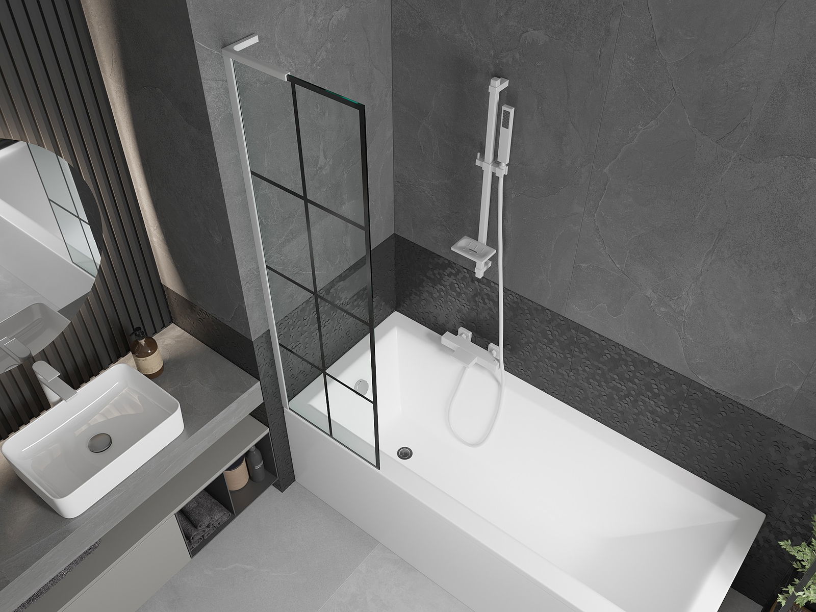 Dzięki zastosowaniu uniwersalnego systemu mocowania, parawan może być zamontowany z prawej lub z lewej strony, zależnie od potrzeb. W ten sposób możesz z łatwością zaprojektować prysznic dopasowany do przestrzeni łazienki.