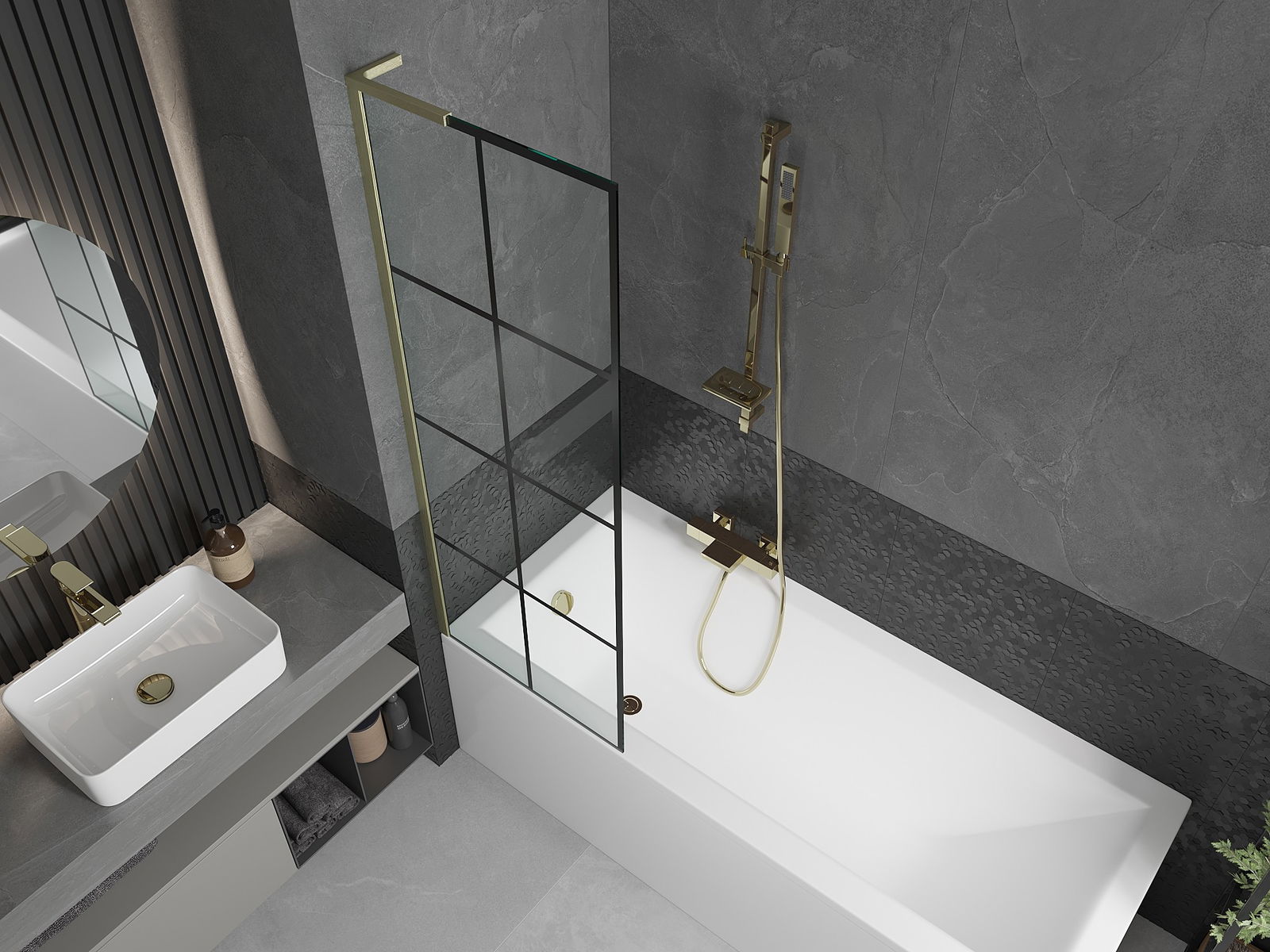 Mexen Next L parawan nawannowy 1-skrzydłowy 60 x 150 cm, czarna kratka, złoty szczotkowany - 895-060-000-03-77-55