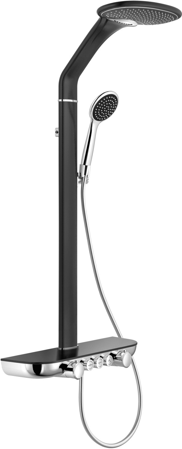 Strumień wydobywający się z deszczownicy imituje naturalny deszcz. Sprawia, że krople wody spadają równomiernie na całe ciało, spłukując użyte kosmetyki, a także łagodząc stres i napięcie mięśni. Codzienny relaks w zgodzie z naturą.