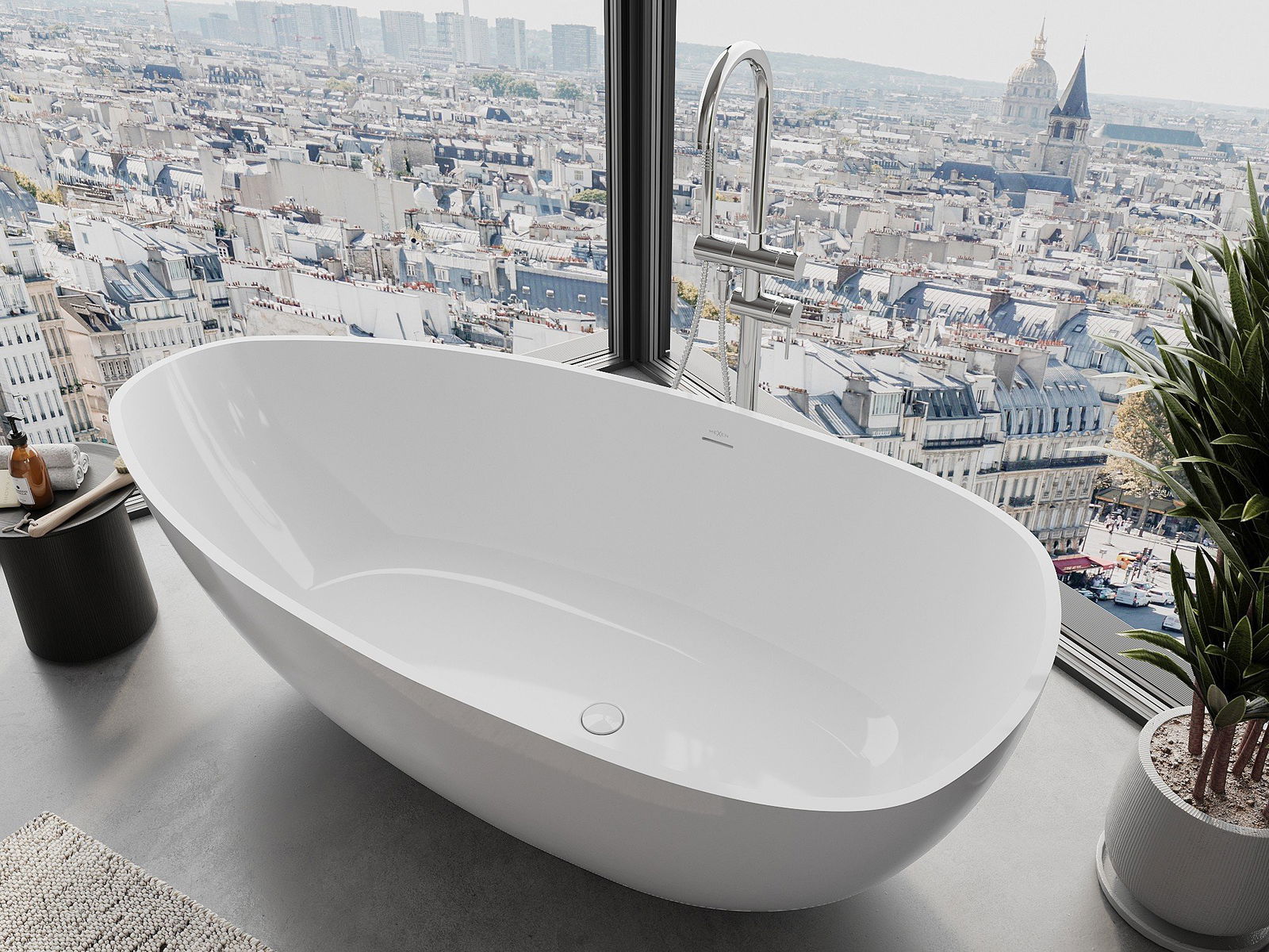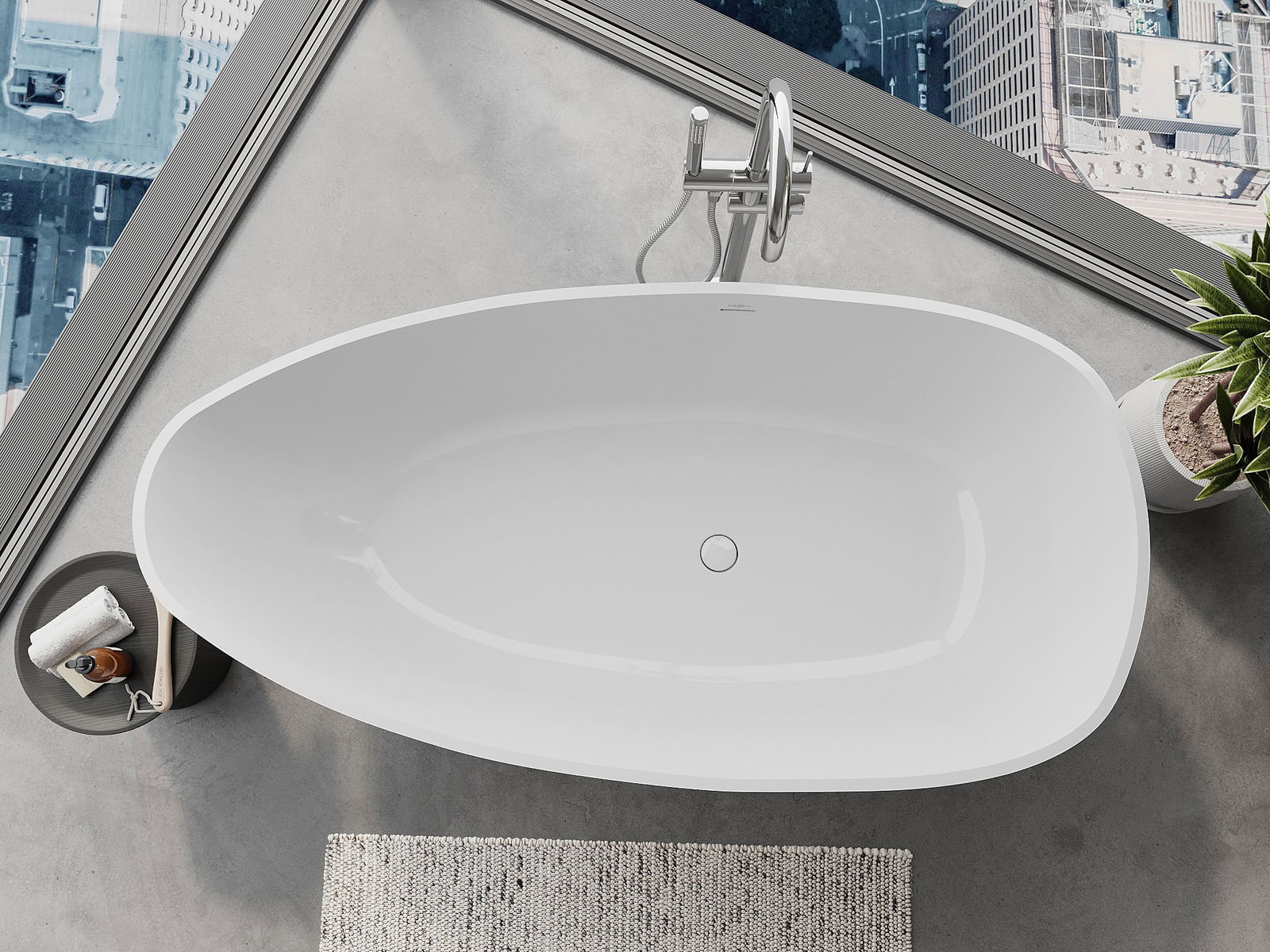 Mexen Imola wanna wolnostojąca z konglomeratu 160 x 81 cm, biała połysk - 57281608010