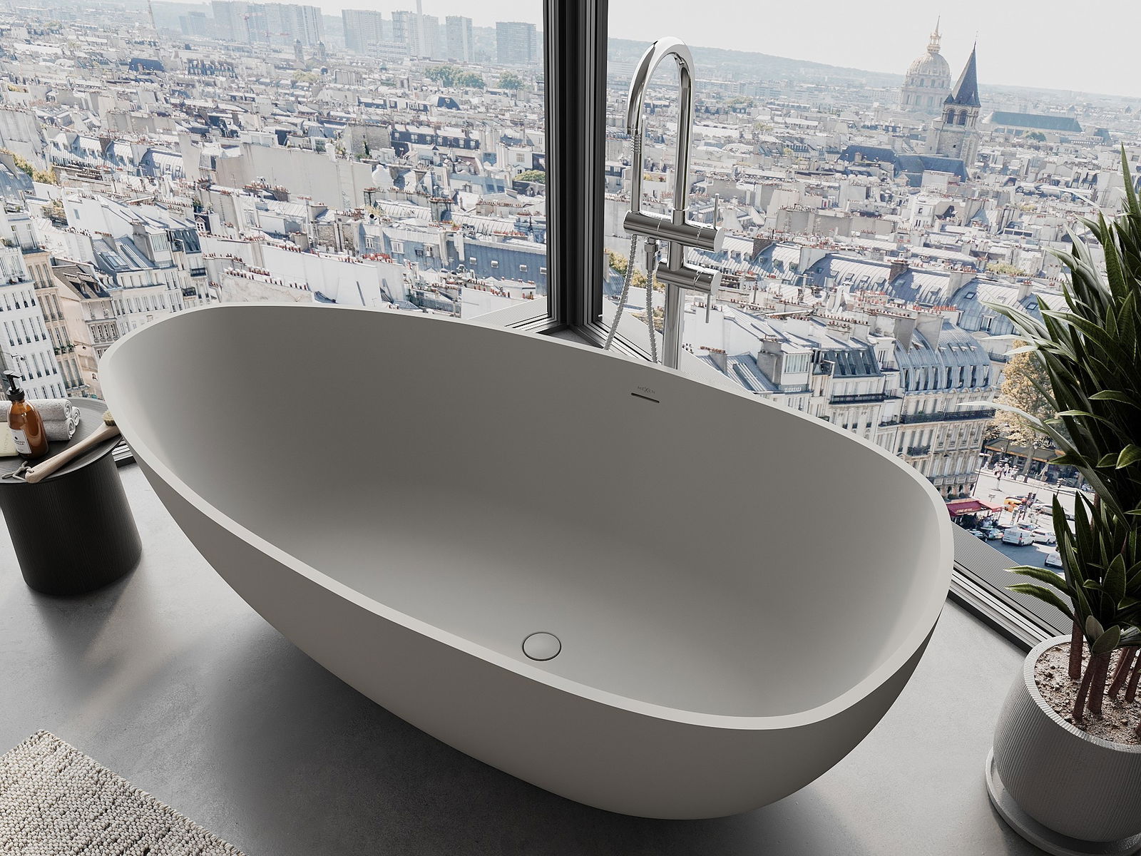 Matowa powierzchnia doskonale podkreśla charakter koloru produktu, nadając mu wyjątkowe i wyraziste wykończenie. Subtelna struktura matowej wanny wprowadza do łazienki elegancję, tworząc estetyczną przestrzeń.