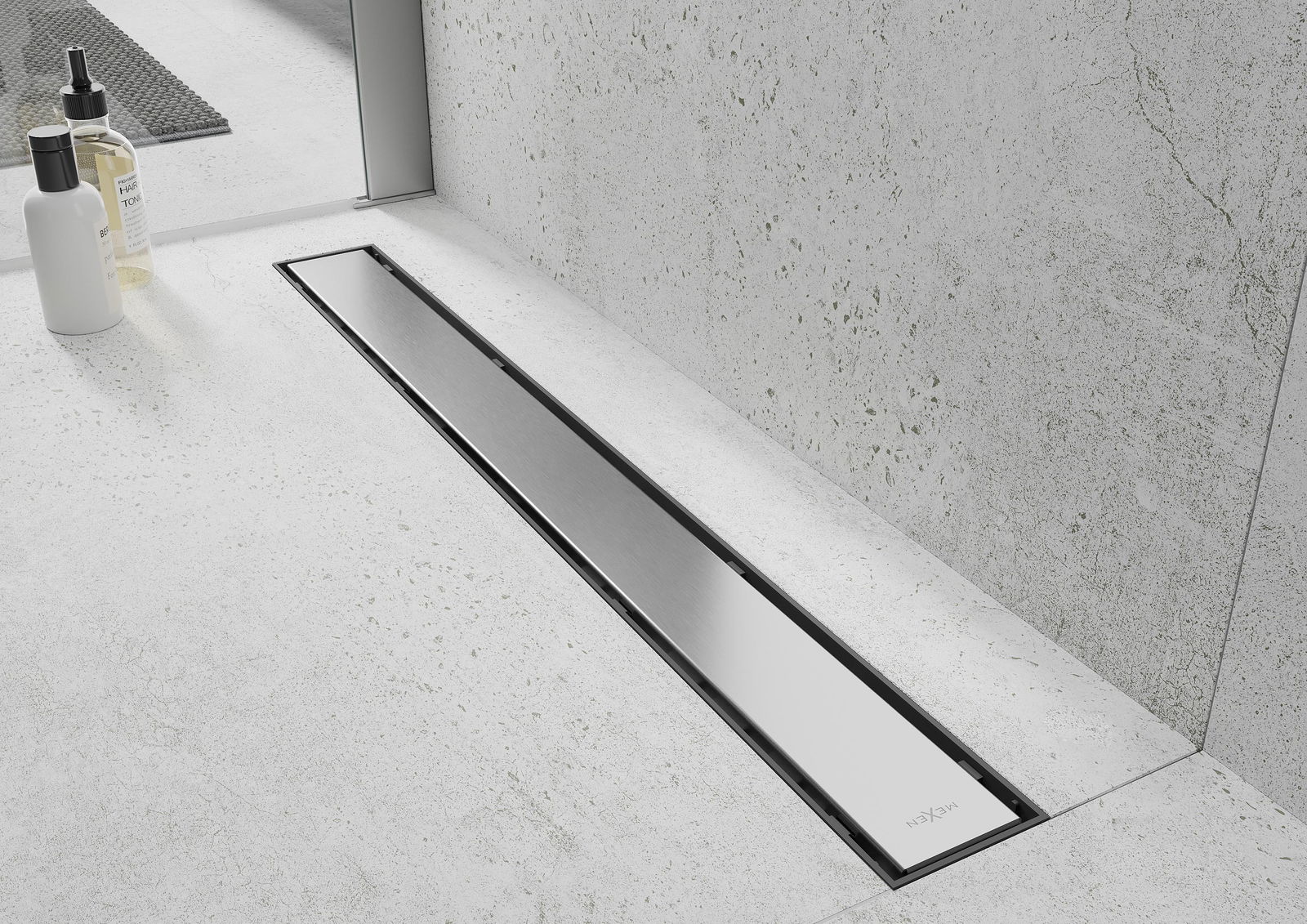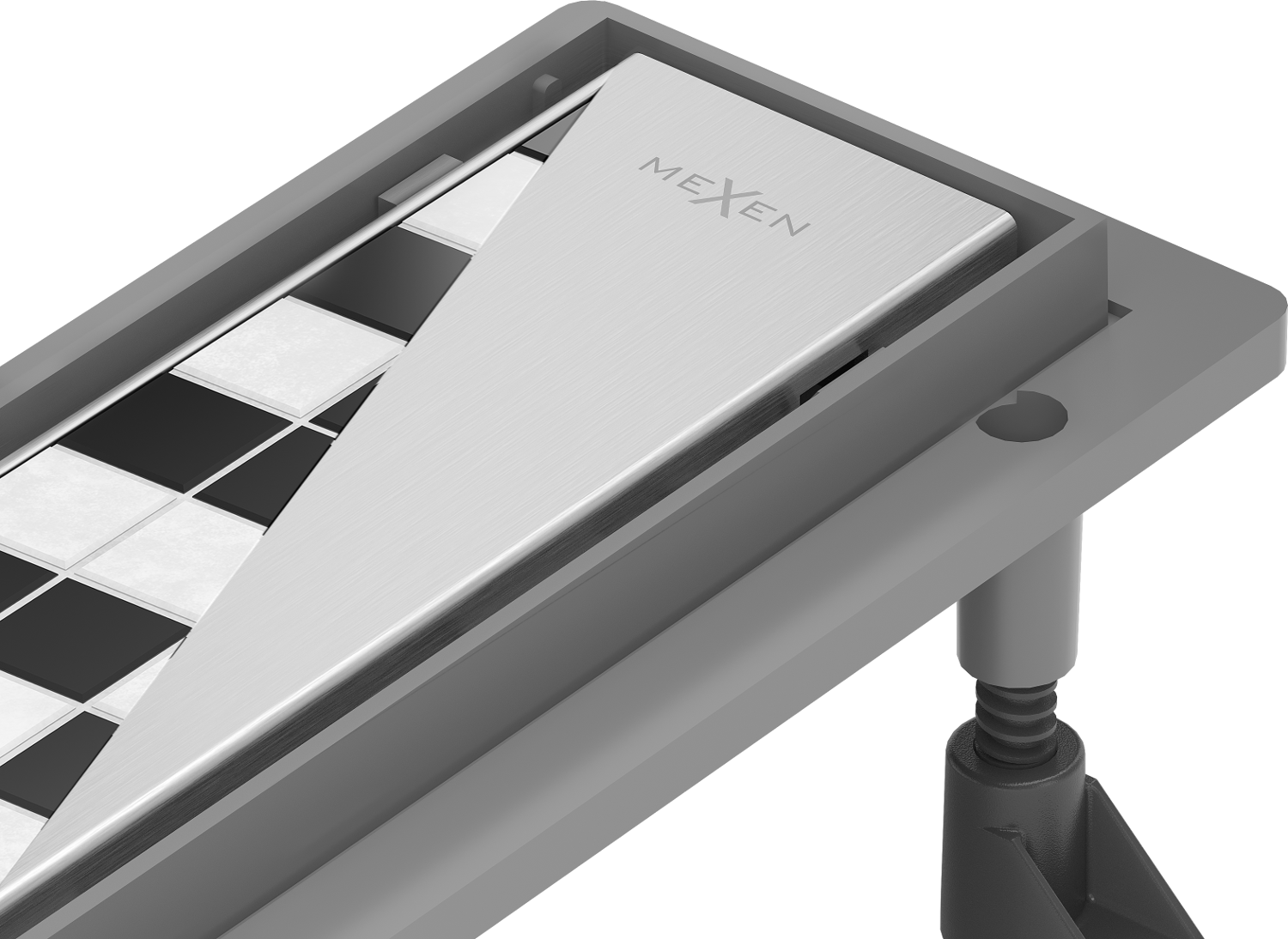 Dwustronna maskownica z możliwością obrócenia w każdym momencie pozwala na zmianę aranżacji. Z jednej strony znajduje się gładka stal nierdzewna, po odwróceniu maskownicę można zabudować płytkami, by tworzyła połączenie z podłogą.