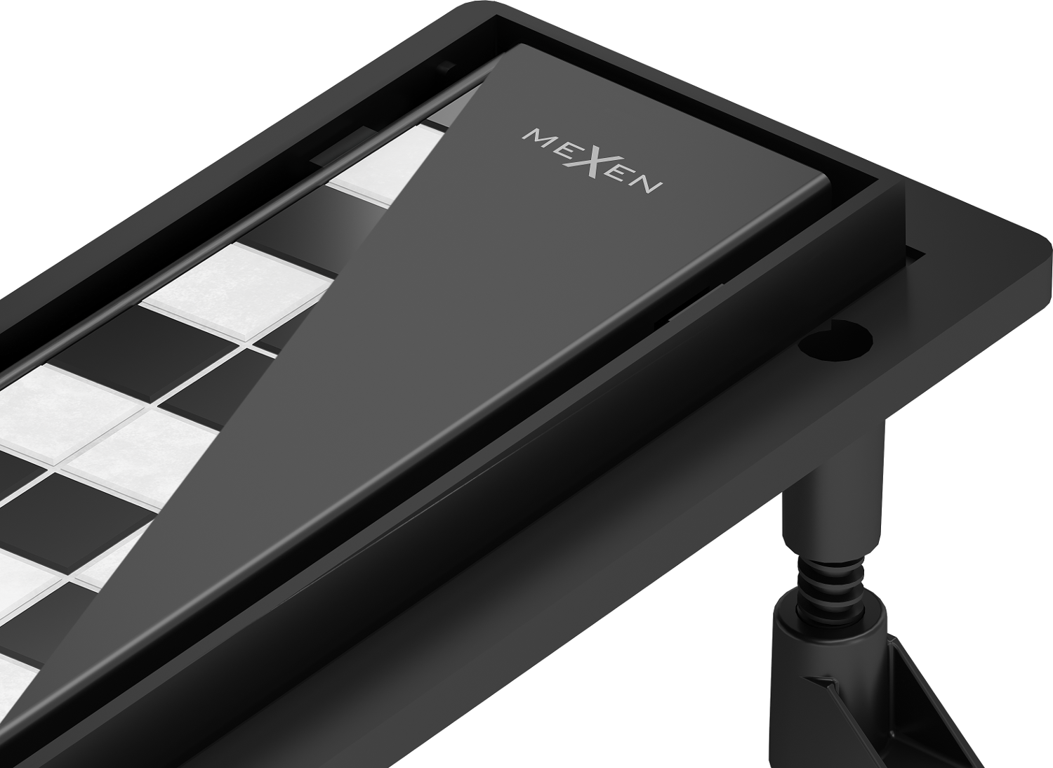 Odpływ jest wyposażony w regulowane nóżki, które umożliwiają dopasowanie odpowiedniej wysokości odpływu oraz wypoziomowanie na nierównej powierzchni. W ten sposób odpływ jest jeszcze lepiej dopasowany do warunków danej łazienki.
