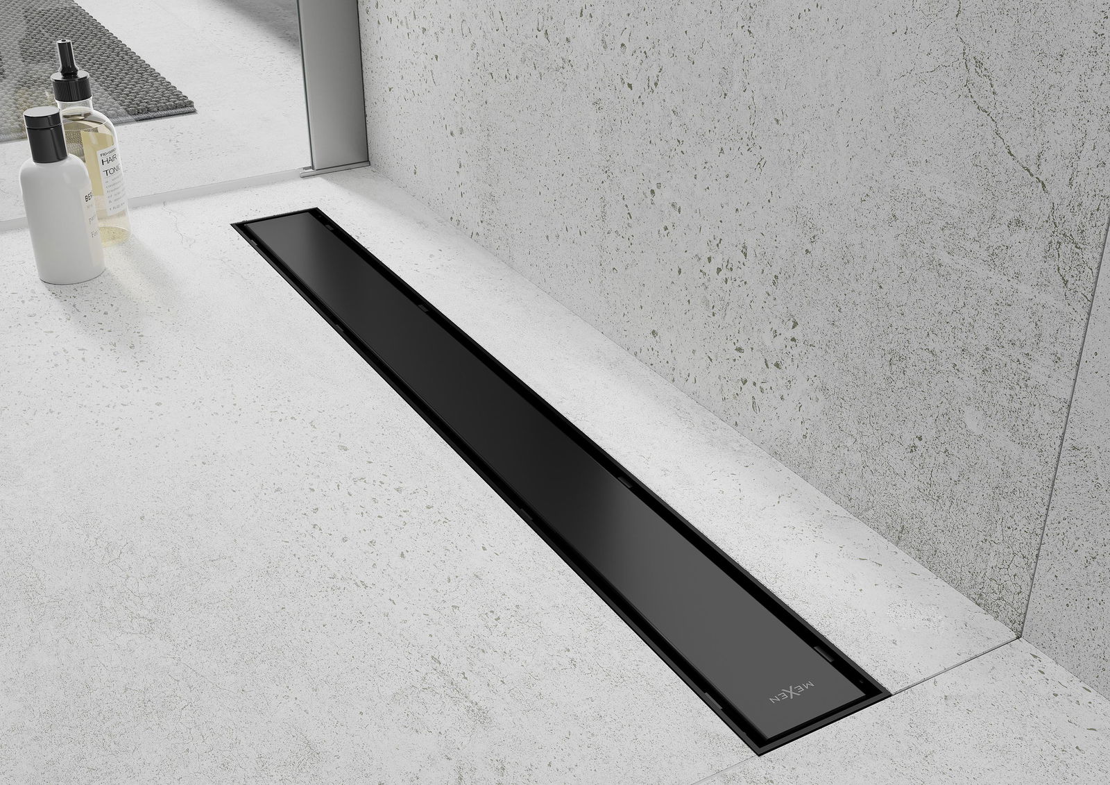 Dwustronna maskownica z możliwością obrócenia w każdym momencie pozwala na zmianę aranżacji. Z jednej strony znajduje się gładka stal nierdzewna, po odwróceniu maskownicę można zabudować płytkami, by tworzyła połączenie z podłogą.