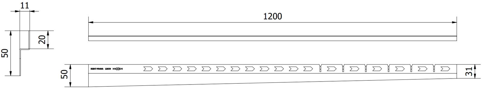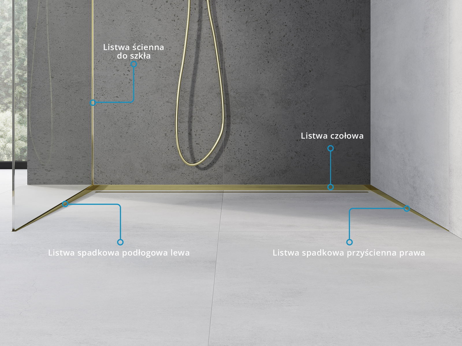 Boczna krawędź listwy wymusza spad jednostronny do odpływu liniowego bez konieczności wykonywania tzw. koperty