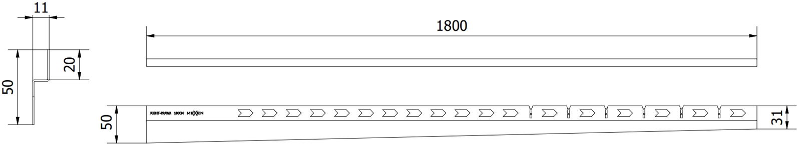 Boczna krawędź listwy wymusza spad jednostronny do odpływu liniowego bez konieczności wykonywania tzw. koperty