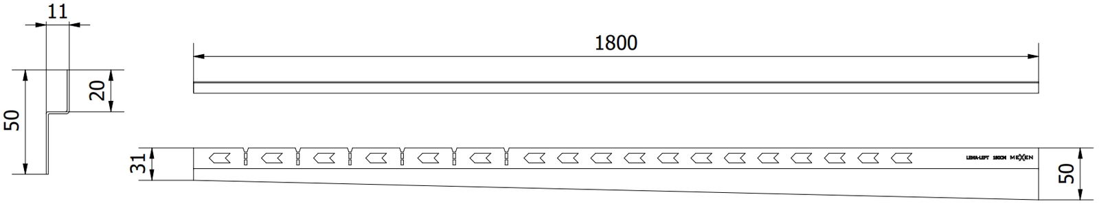 Mexen Line-B listwa spadkowa przyścienna 180 cm lewa, złota szczotkowana - 185502180L