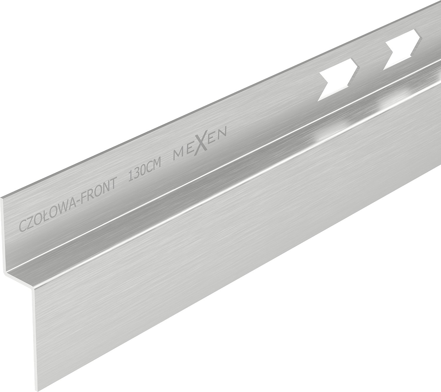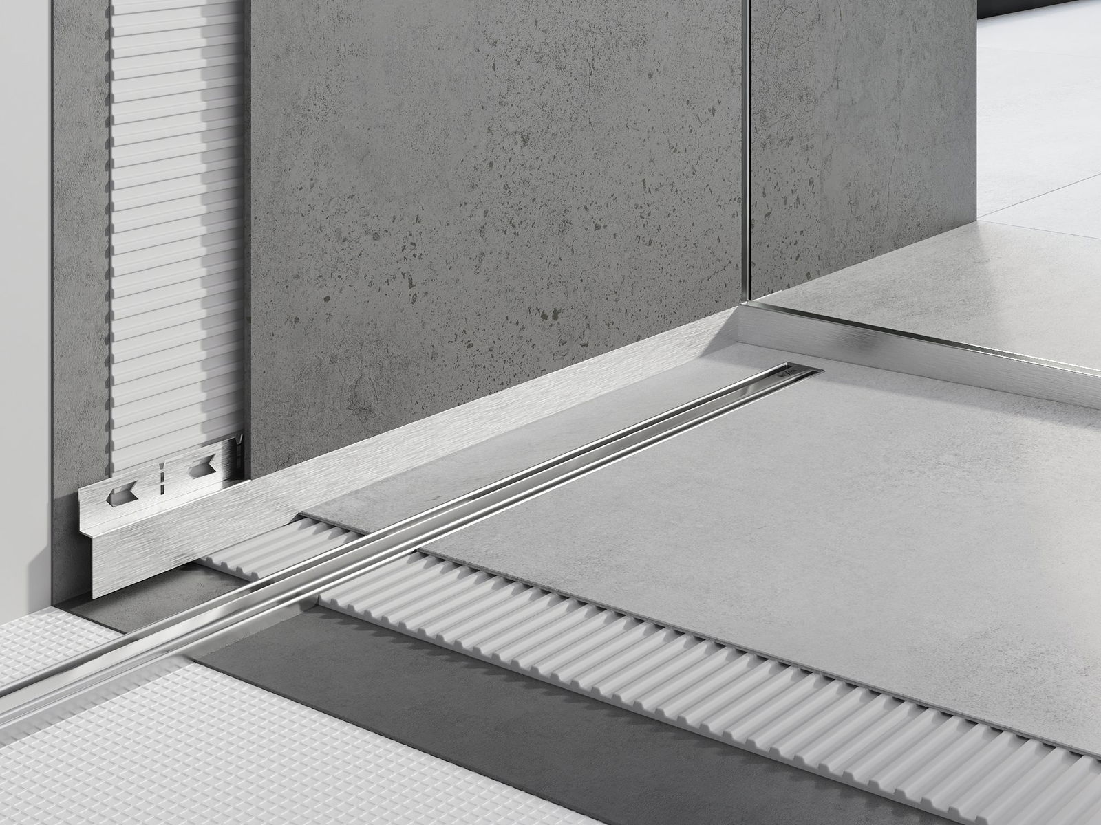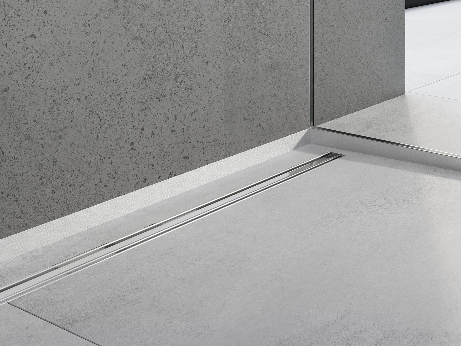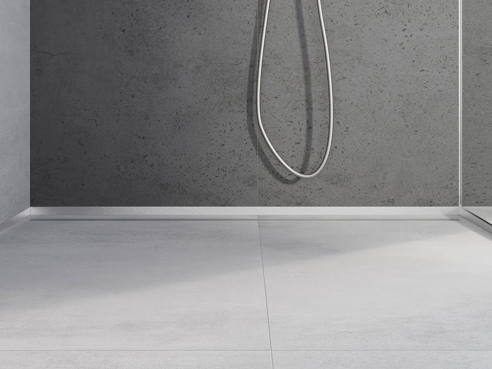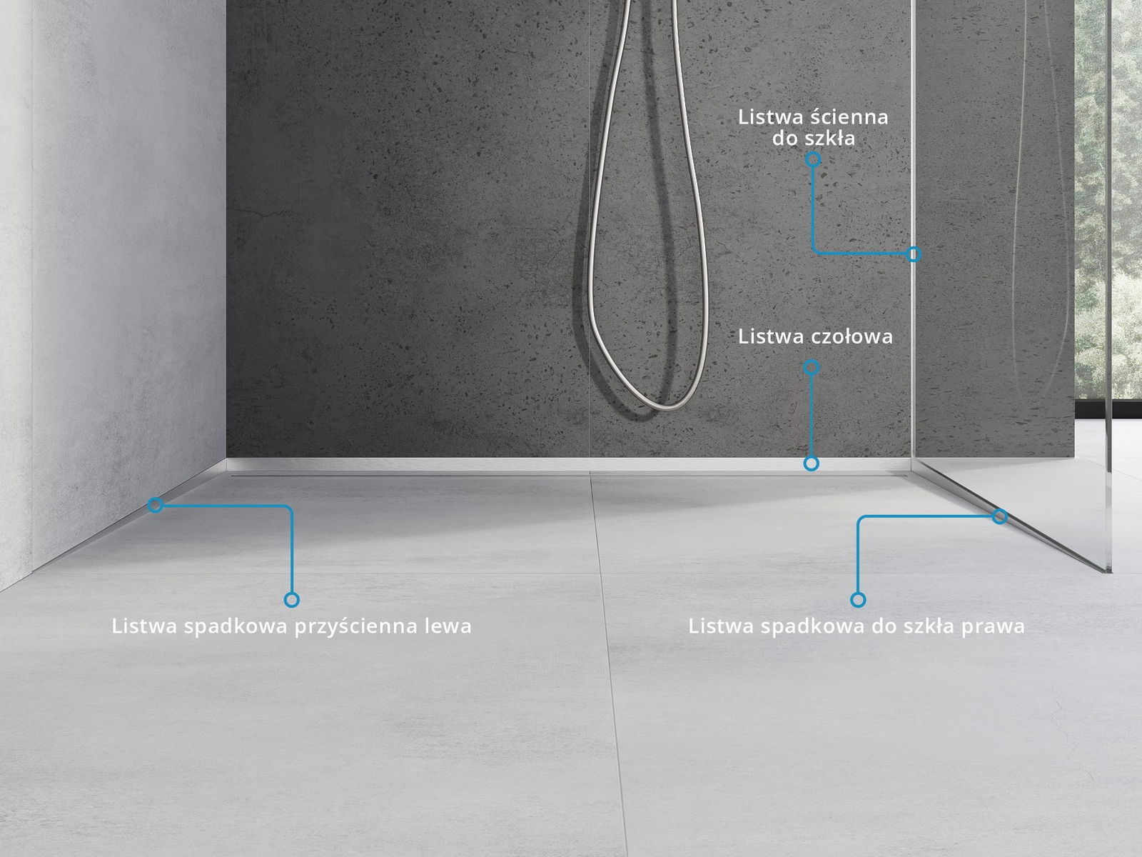 Listwa czołowa jest uzupełnieniem przy zastosowaniu listew spadkowych, tworząc spójną całość w przestrzeni prysznicowej