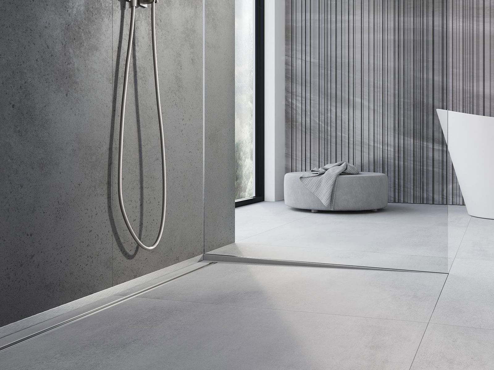 Boczna krawędź listwy wymusza spad jednostronny do odpływu liniowego bez konieczności wykonywania tzw. koperty