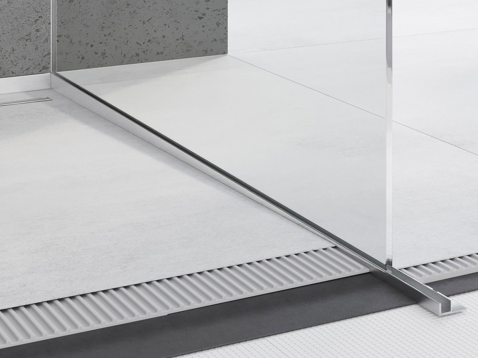 Listwa posiada miejsce na montaż szyby prysznicowej, co nie tylko ułatwia proces instalacji, ale także pozwala na zamaskowanie wykończenia za pomocą silikonu