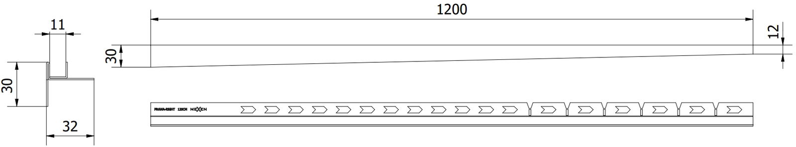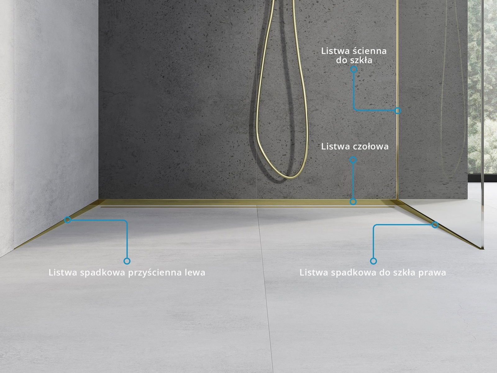Boczna krawędź listwy wymusza spad jednostronny do odpływu liniowego bez konieczności wykonywania tzw. koperty