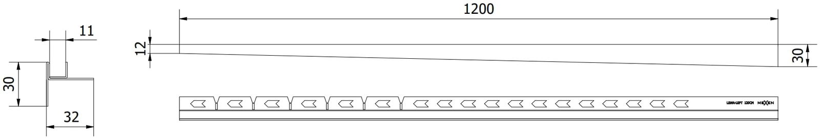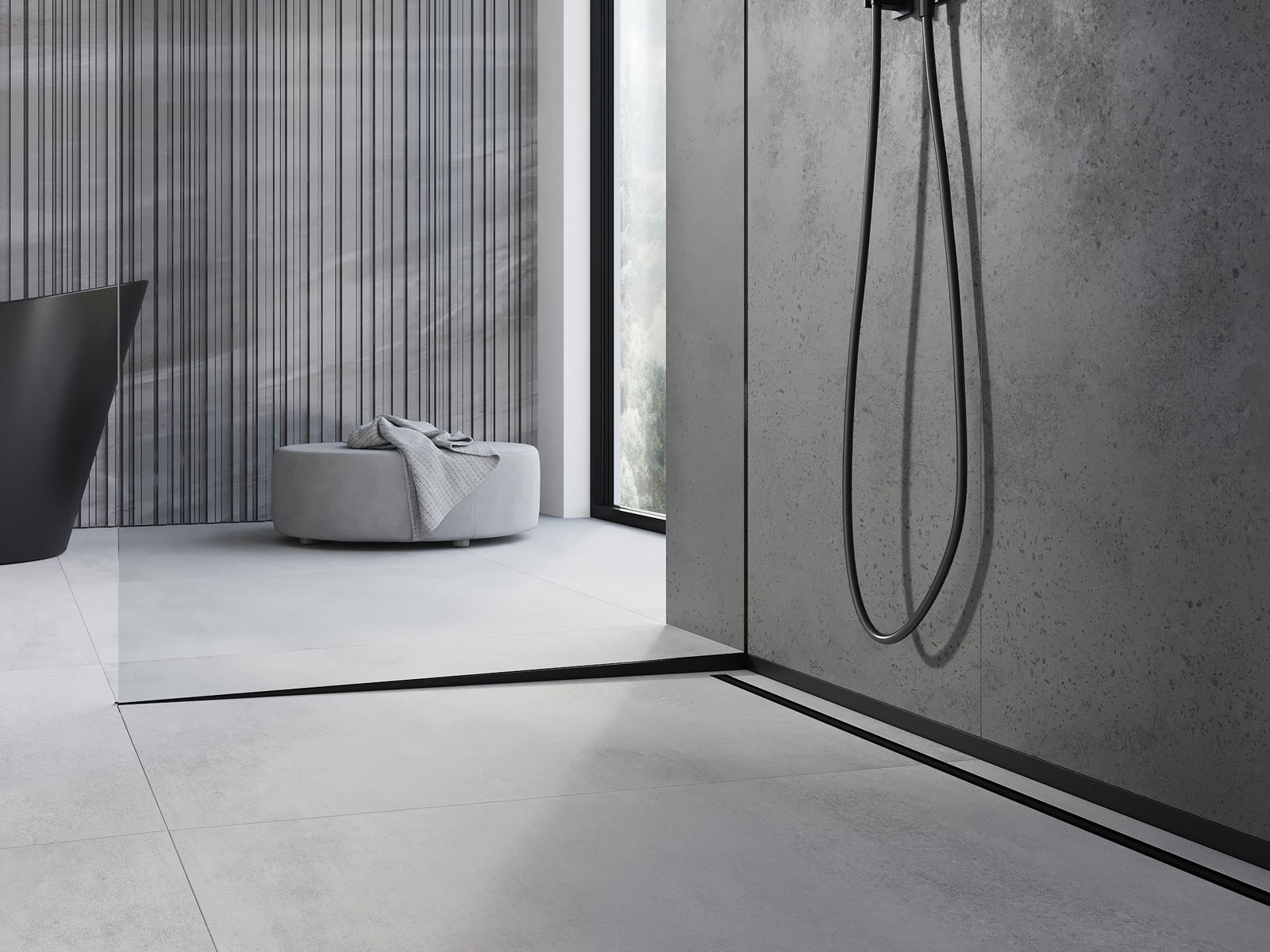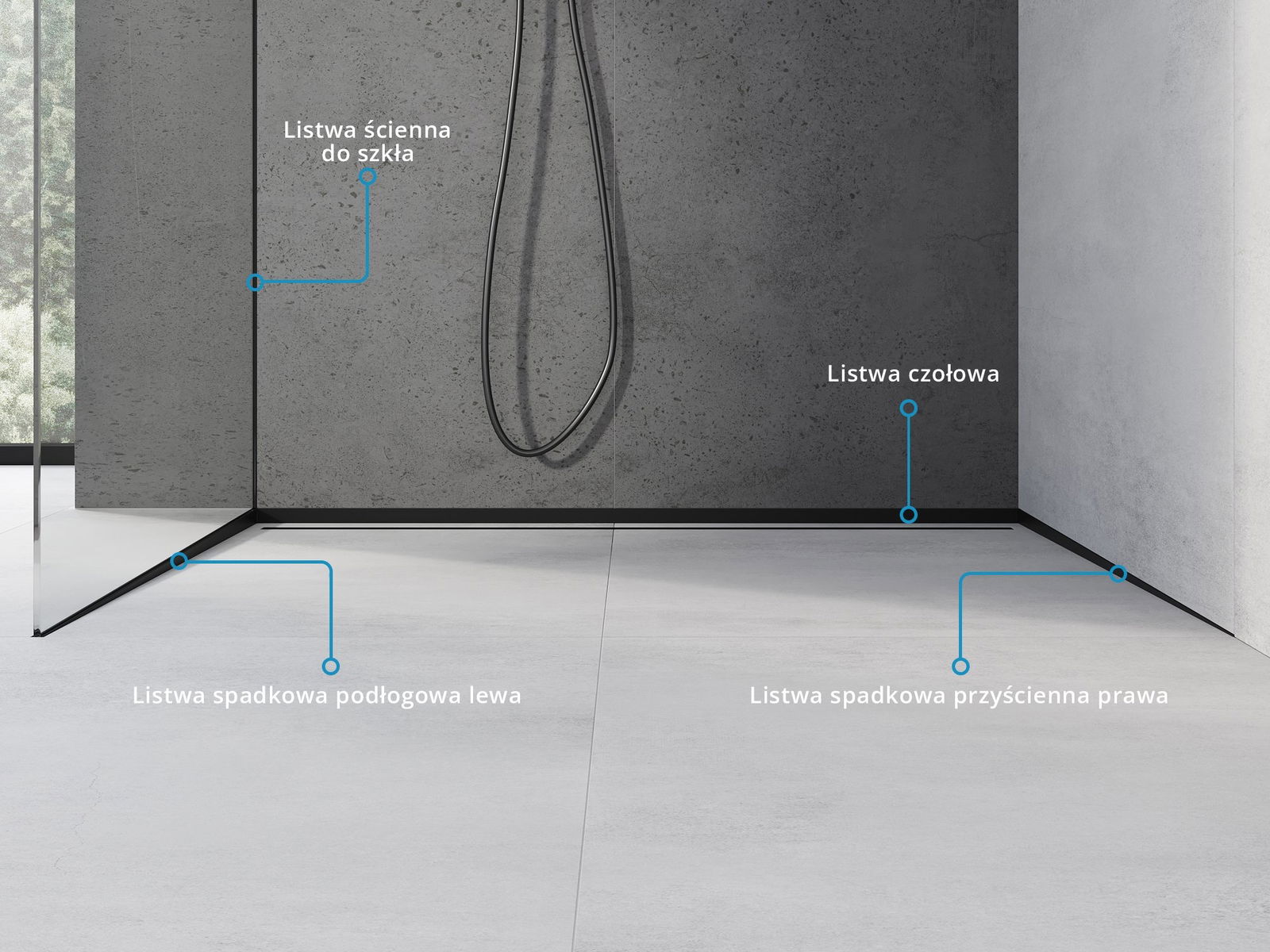 Boczna krawędź listwy wymusza spad jednostronny do odpływu liniowego bez konieczności wykonywania tzw. koperty