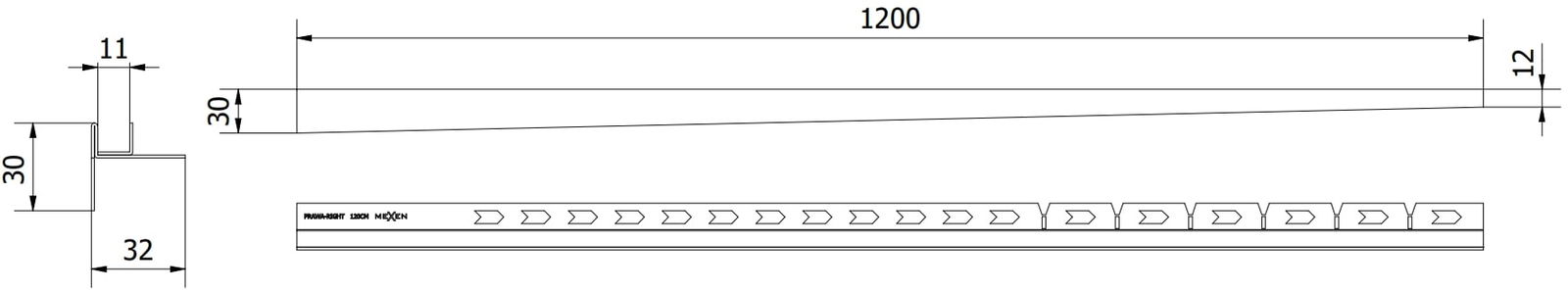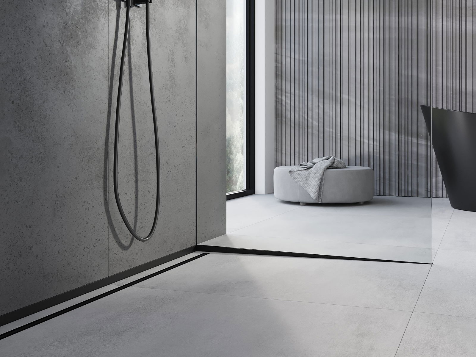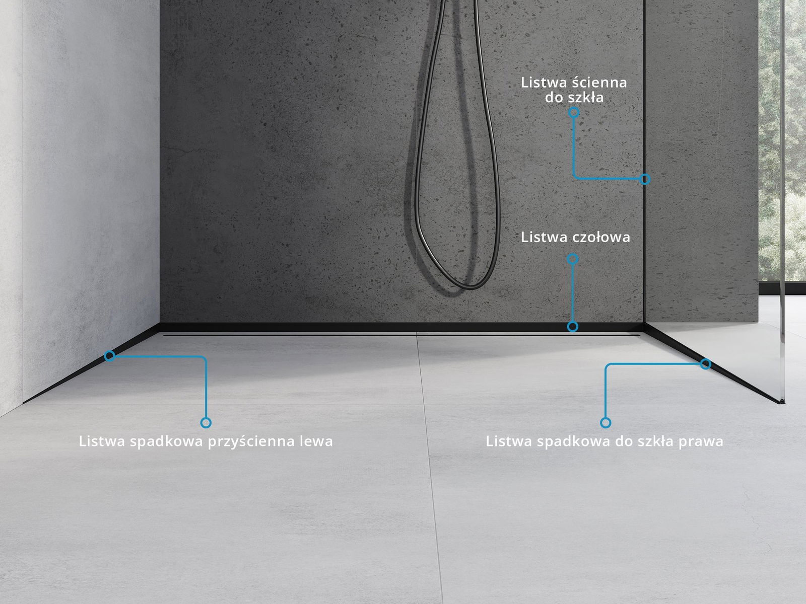 Boczna krawędź listwy wymusza spad jednostronny do odpływu liniowego bez konieczności wykonywania tzw. koperty