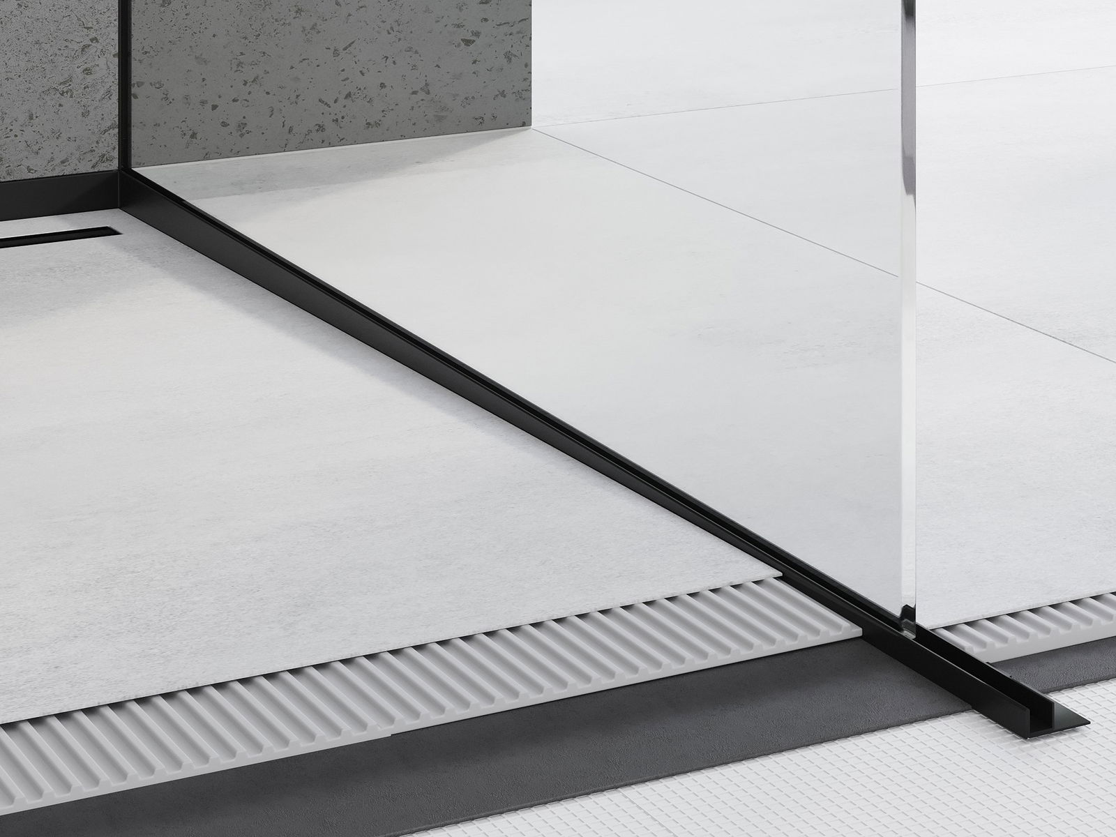 Listwa posiada miejsce na montaż szyby prysznicowej, co nie tylko ułatwia proces instalacji, ale także pozwala na zamaskowanie wykończenia za pomocą silikonu